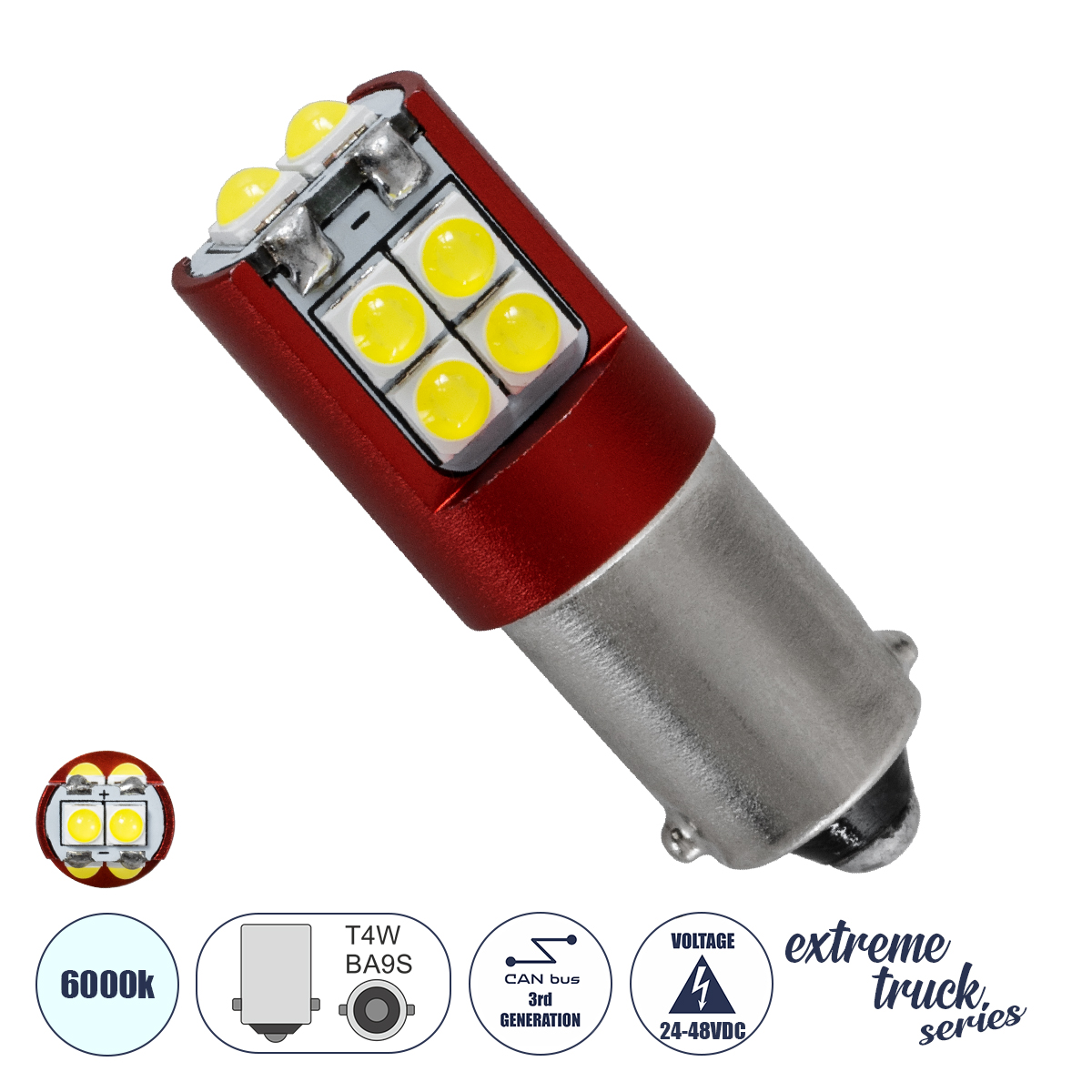 GloboStar® 81464 Λάμπα Αυτοκινήτου LED BA9s - T4W 3rd Generation Can-Bus Extreme Truck Series 10xSMD3535 2W 240lm 360° DC 24-48V IP20 Φ1.1 x Υ3.2cm Ψυχρό Λευκό 6000K