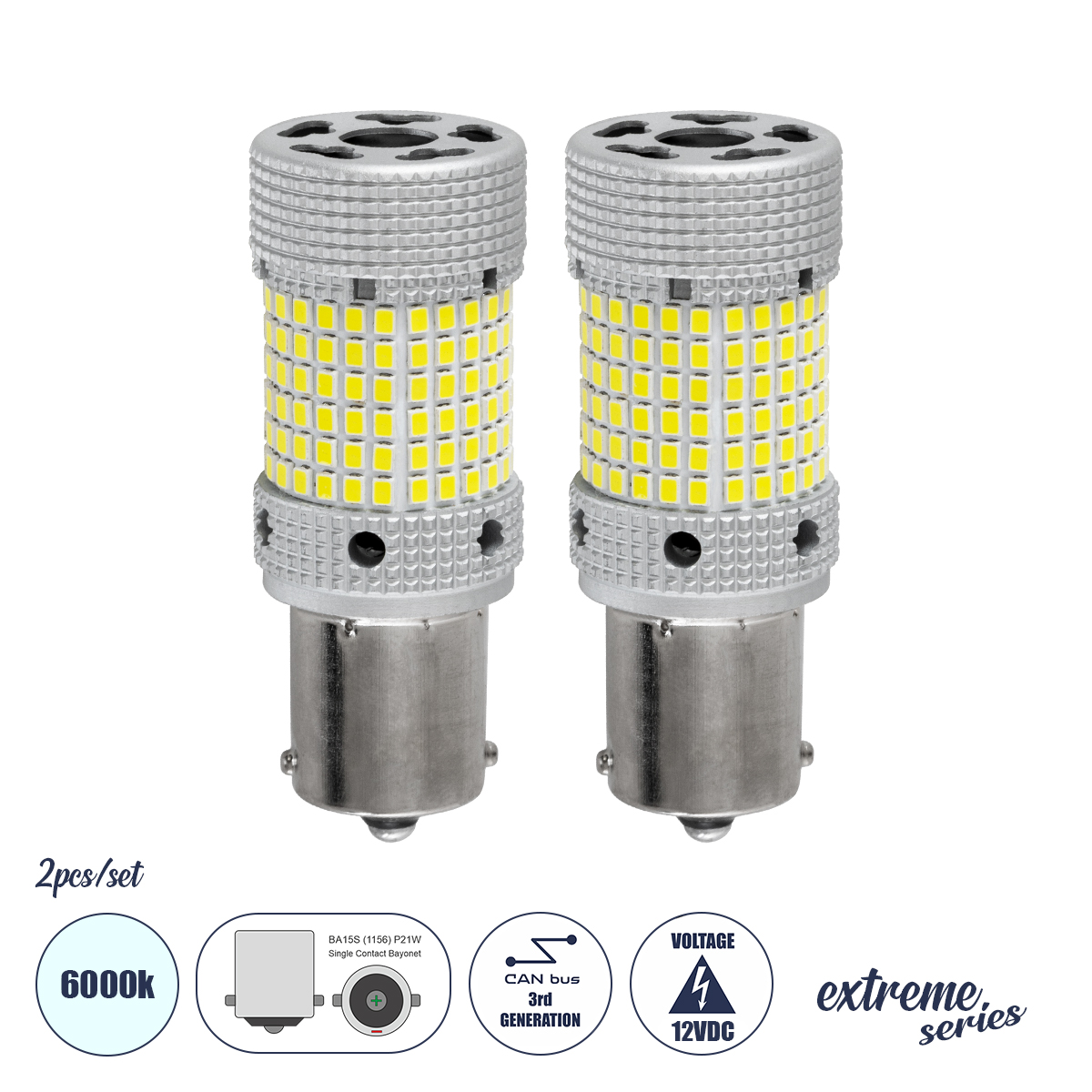 GloboStar® 1156 - BA15S - P21W 81476-B Λάμπες Αυτοκινήτου LED 3rd Generation Can-Bus Extreme Series 150xSMD2016 28W 3360lm 360° DC 12-16V IP20 Φ2.1 x Υ5.5cm Ψυχρό Λευκό 6000K - Σετ 2 Τεμαχίων σε Box