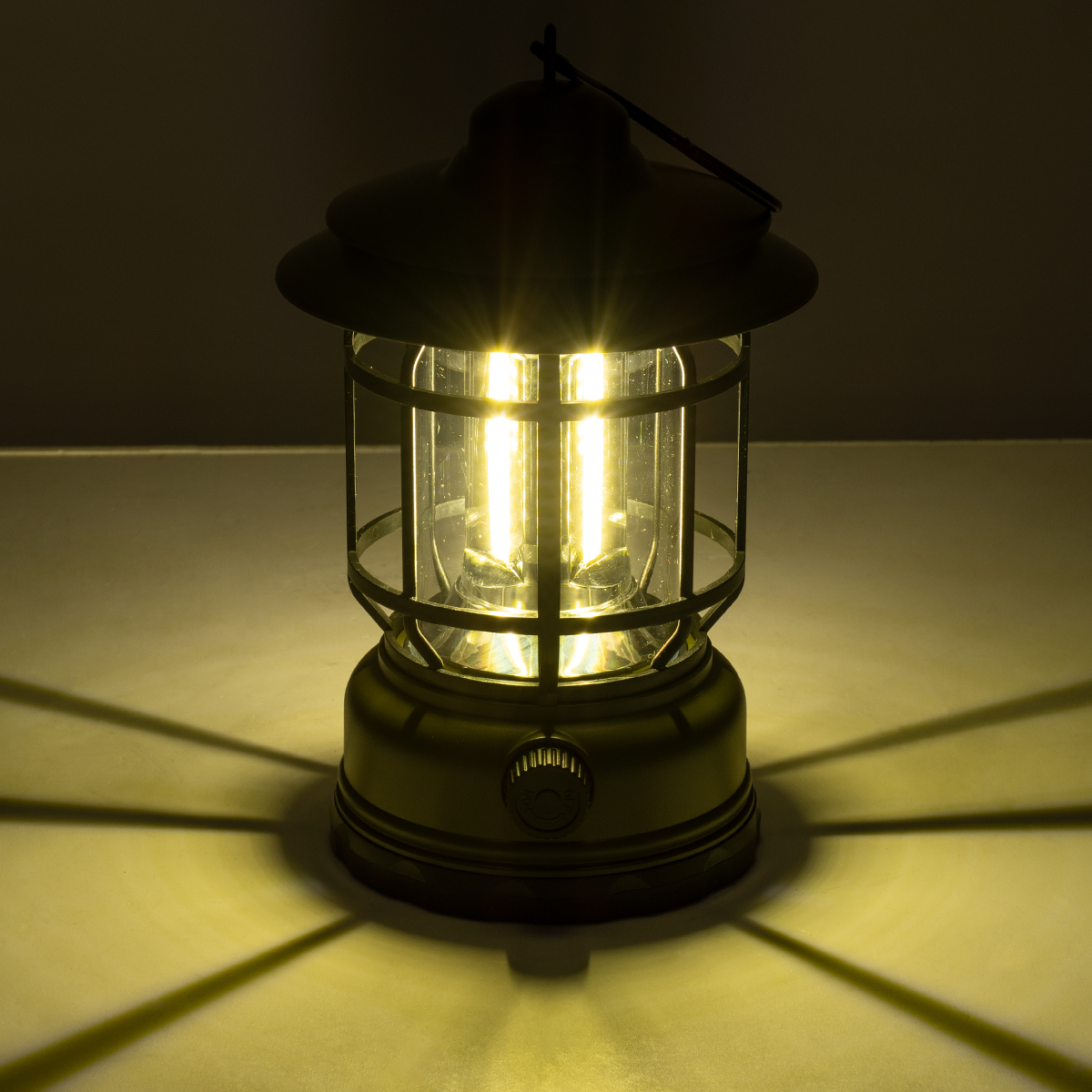 GloboStar® 85693 Αυτόνομο Επαναφορτιζόμενο Φανάρι Camping LED 5W USB 2.0 με Επαναφορτιζόμενη Μπαταρία 1 x 18650 2000mAh Li-ion - IP20 - Dimmable - Πράσινο Χακί με Διάφανο Γυαλί - Θερμό Λευκό 3000K Φ12 x Υ17cm