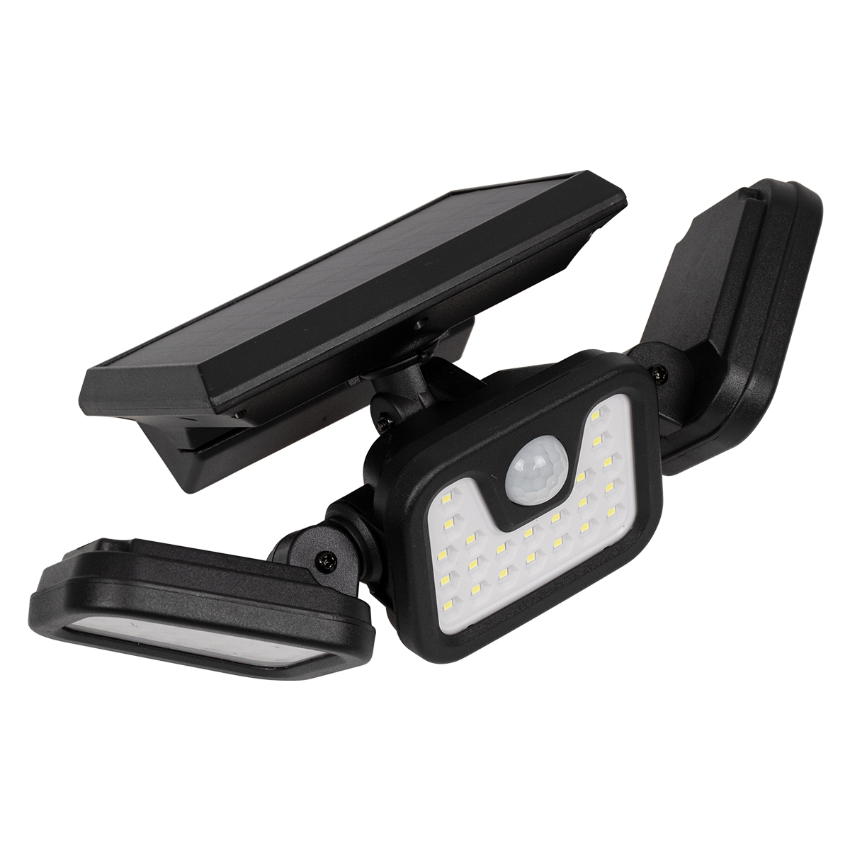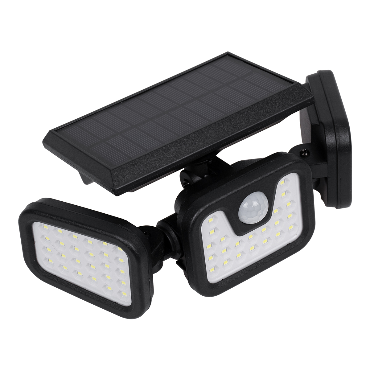 GloboStar® 85713 Αυτόνομος Ηλιακός Προβολέας με Τρεις Περιστρεφόμενες Κεφαλές LED SMD 2835 40W 2000lm με Ενσωματωμένη Μπαταρία 2400mAh - Φωτοβολταϊκό Πάνελ με Αισθητήρα Ημέρας-Νύχτας - PIR Αισθητήρα Κίνησης Αδιάβροχο IP65 Ψυχρό Λευκό 6000K