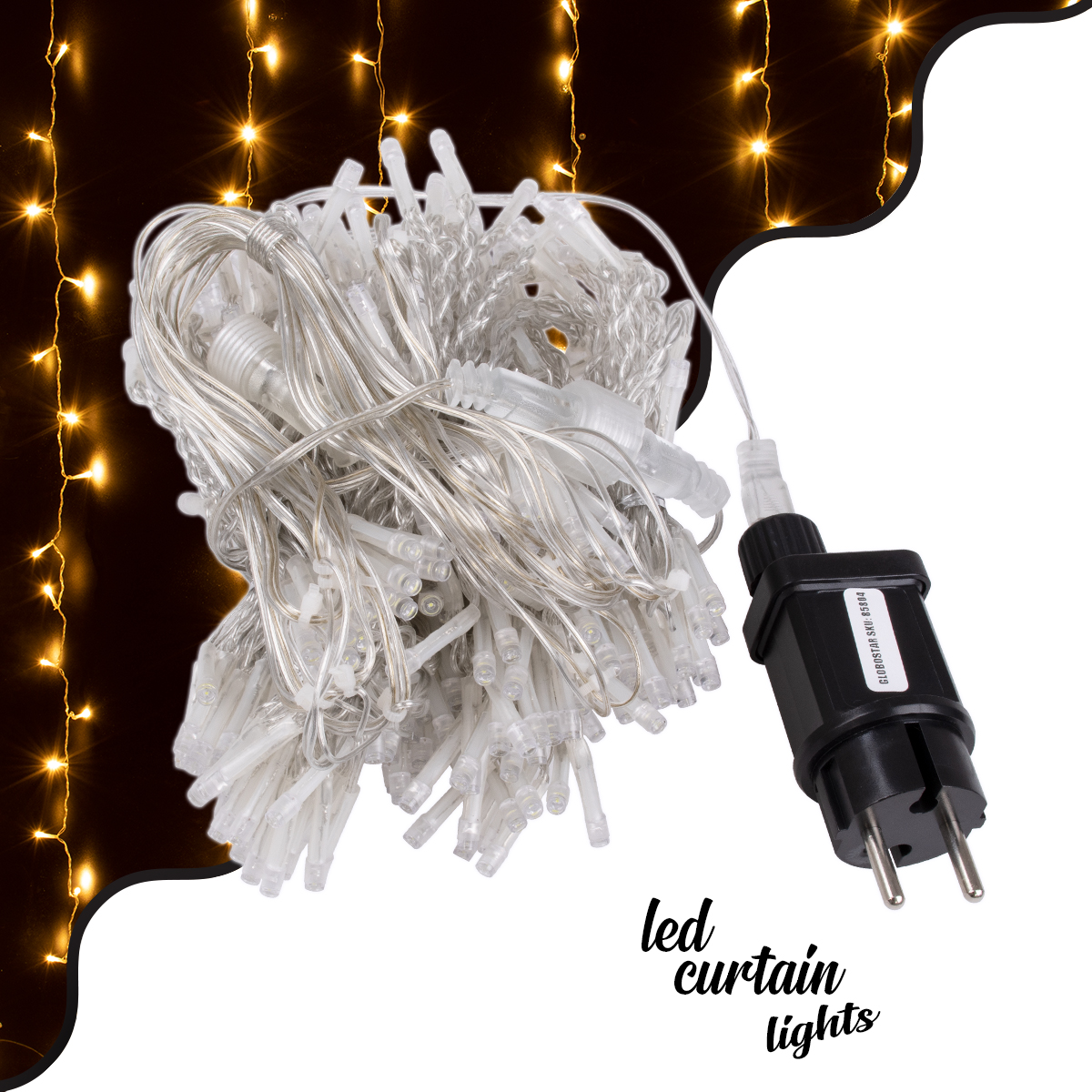 85803 Διακοσμητική Κουρτίνα 3 x 3 Μέτρα με Controller 8 Προγραμμάτων Φωτισμού - Επεκτεινόμενη 300 LED 8W AC 230V με Διάφανο Καλώδιο & Πρίζα Schuko Αδιάβροχη IP67 Θερμό Λευκό 3000K Μ3 x Υ3m