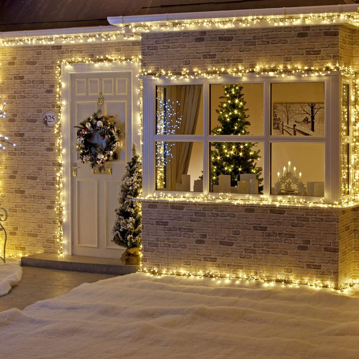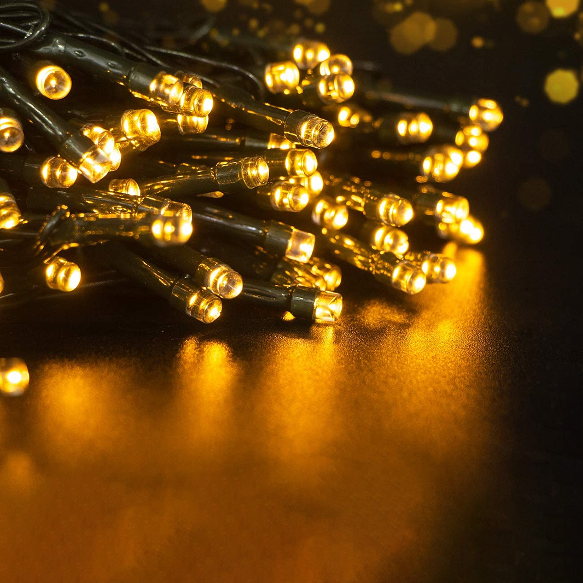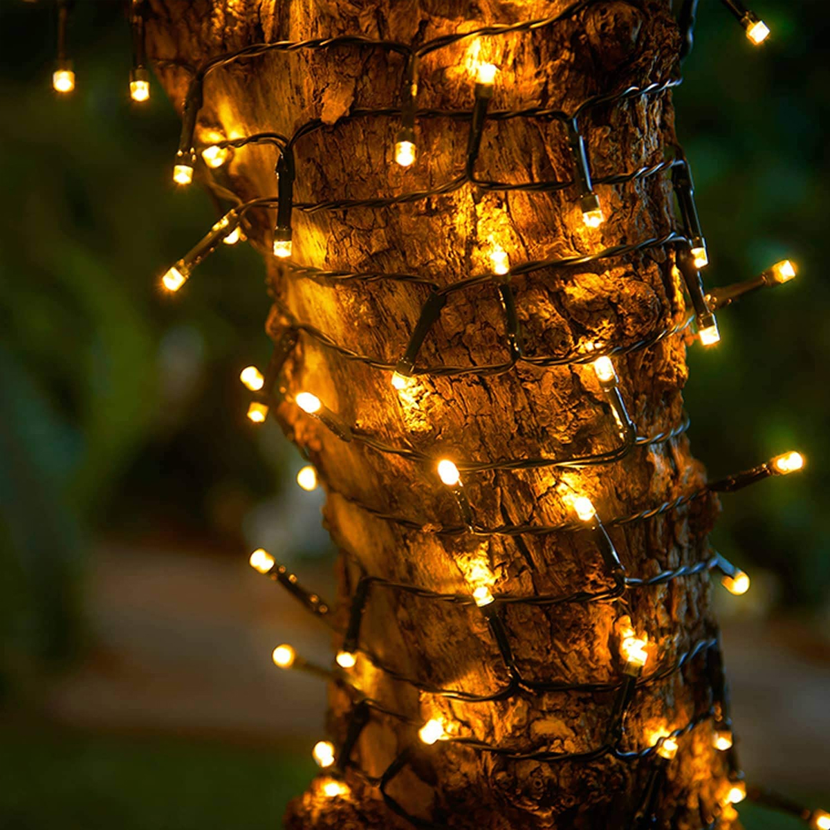 85807 Διακοσμητική Γιρλάντα 10 Μέτρων με Controller 8 Προγραμμάτων Φωτισμού - 100 LED 4W με Ενσωματωμένη Μπαταρία 600mAh - Φωτοβολταϊκό Πάνελ - Αισθητήρα Ημέρας-Νύχτας - Βάση Κήπου & Σκούρο Πράσινο Καλώδιο Αδιάβροχη IP65 Θερμό Λευκό 3000K Μ10m
