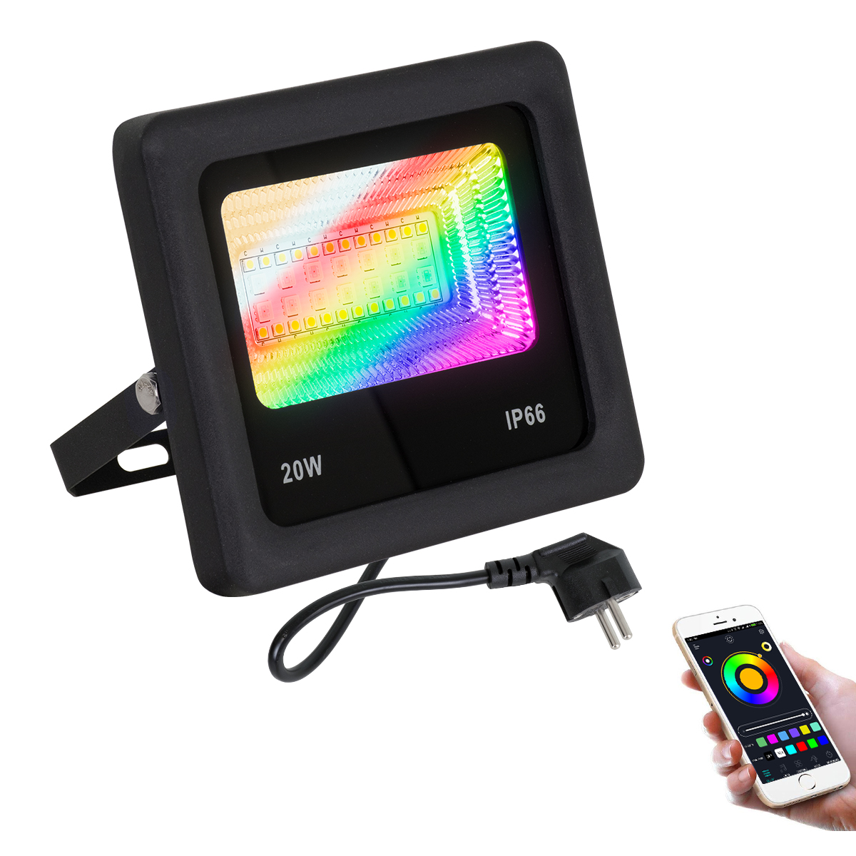 GloboStar® 85815 Προβολέας Εξωτερικός LED SMD 5050 & 2835 20W 2000lm 180° AC 230V με Ασύρματο Wireless Bluetooth Αδιάβροχος IP66 Πολύχρωμος RGB+CCT Θερμό Λευκό 3000K - Λευκό Ημέρας 4500K - Ψυχρό Λευκό 6000K