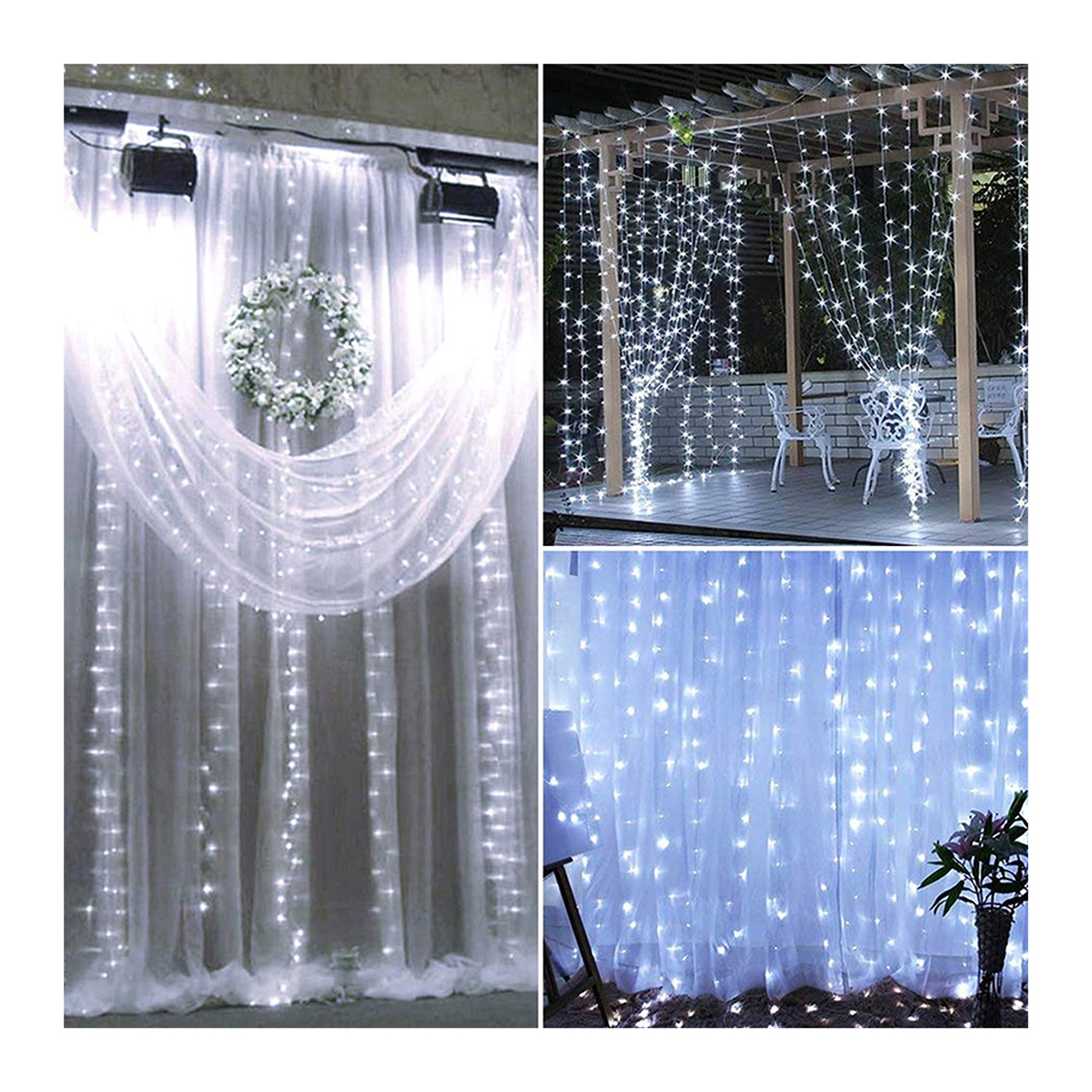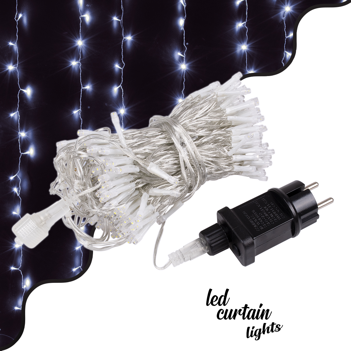 85828 Διακοσμητική Κουρτίνα 3 x 3 Μέτρα με Controller 8 Προγραμμάτων Εναλλαγών Φωτισμού - Επεκτεινόμενη 300 LED 3.6W AC 230V με Διάφανο Καλώδιο & Πρίζα Schuko Αδιάβροχη IP44 Ψυχρό Λευκό 6000K Μ3 x Υ3m