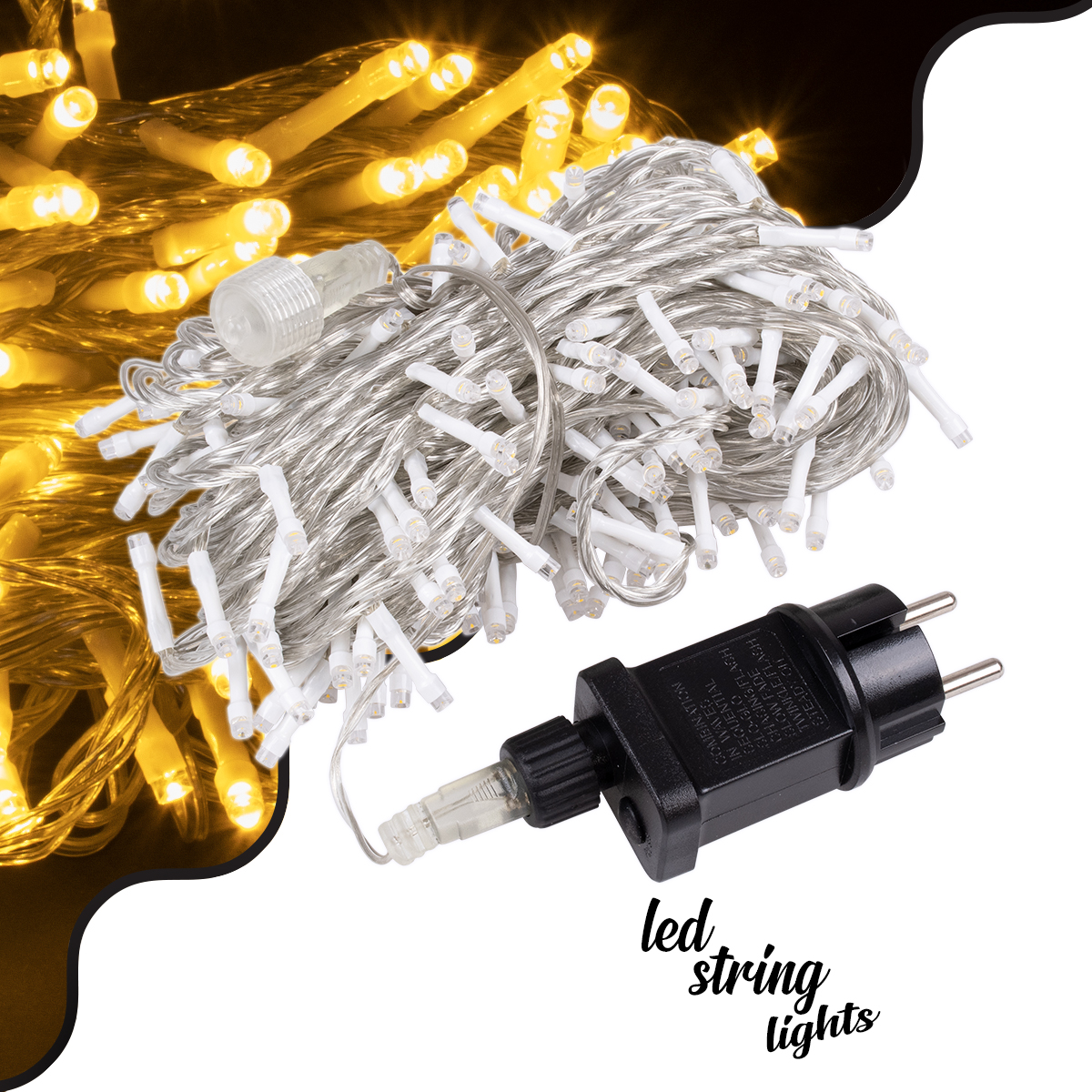 85836 Διακοσμητική Γιρλάντα 23 Μέτρα με Controller 8 Προγραμμάτων Εναλλαγών Φωτισμού - Επεκτεινόμενη 200 LED 3.6W AC 230V με Διάφανο Καλώδιο & Πρίζα Schuko Αδιάβροχη IP44 Θερμό Λευκό 3000K Μ23m