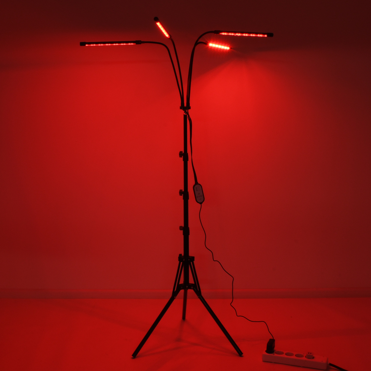 GloboStar® 85956 Grow Light Full Spectrum LED Φωτιστικό Ανάπτυξης Φυτών Γλάστρας με 4 Κινούμενες Κεφαλές & Τρίποδο 150cm SMD 2835 20W 180° AC230V IP20 με Dimmer & Timer Εσωτερικού Χώρου για Κάλυψη Επιφάνειας 1m x 1m Πλήρους Φάσματος Φωτισμού