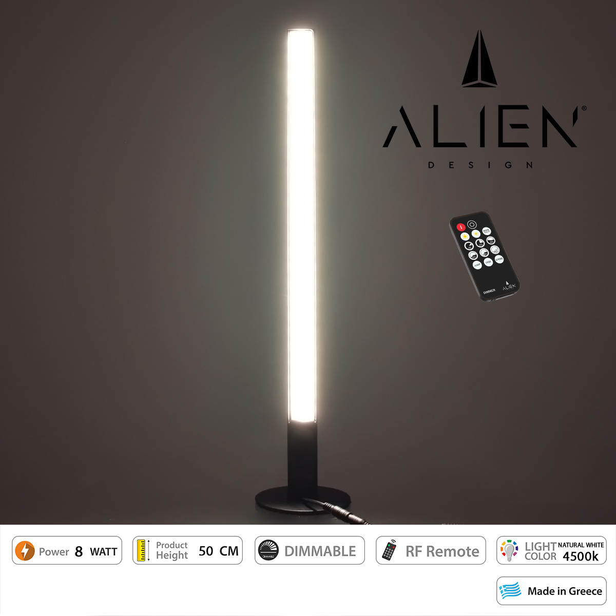 GloboStar® ALIEN-DIVA-BLACK-50-2 ALIEN Design DIVA Μοντέρνο Minimal Nordic Μεταλλικό Φωτιστικό Επιτραπέζιο - Πορτατίφ - Λαμπατέρ Μαύρο LED 8W 1040lm με Ασύρματο Χειριστήριο RF & Dimmer IP20 Φυσικό Λευκό 4500K Μ3 x Π1.6 x Υ50cm
