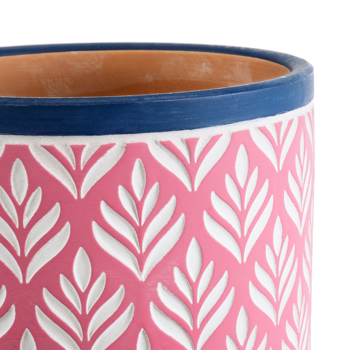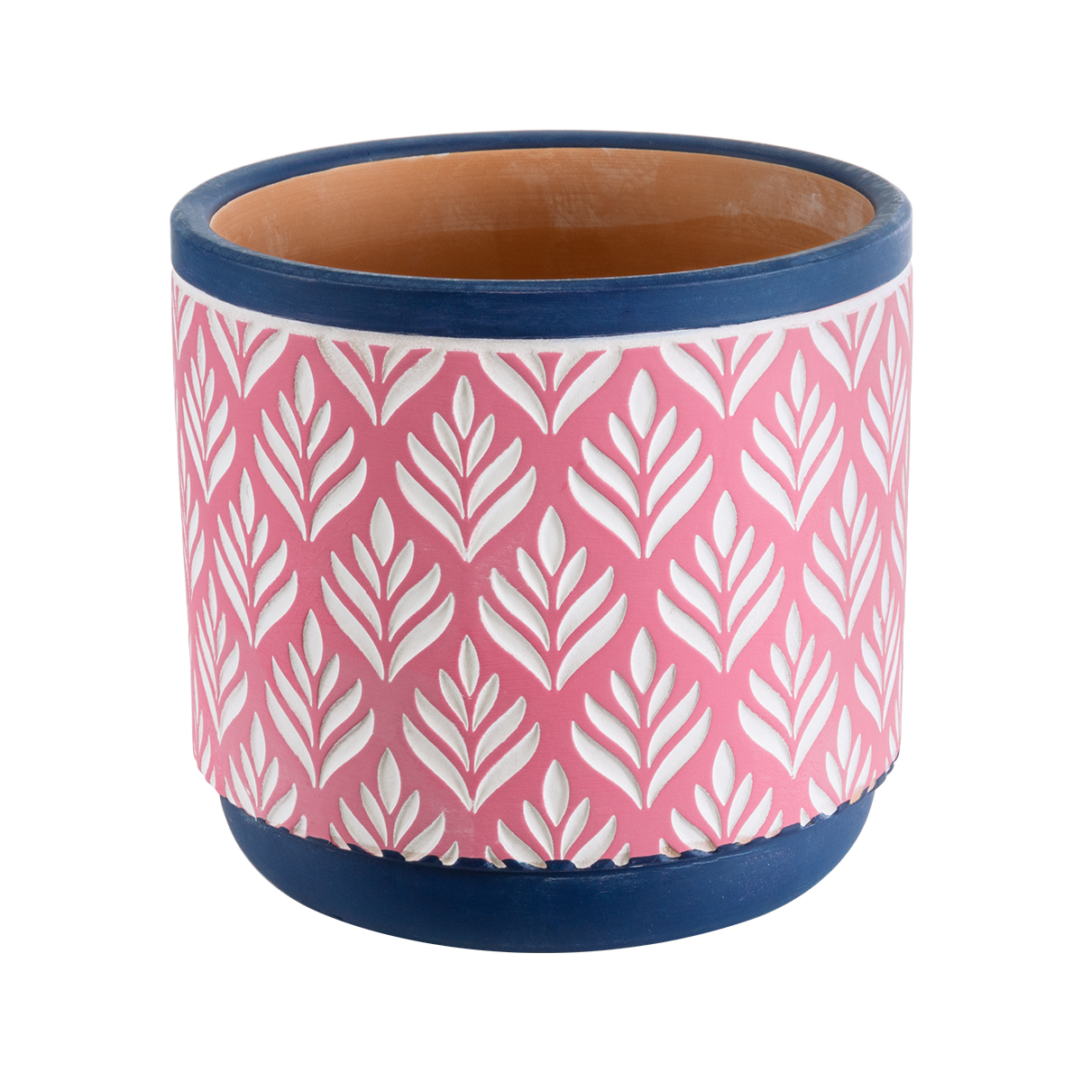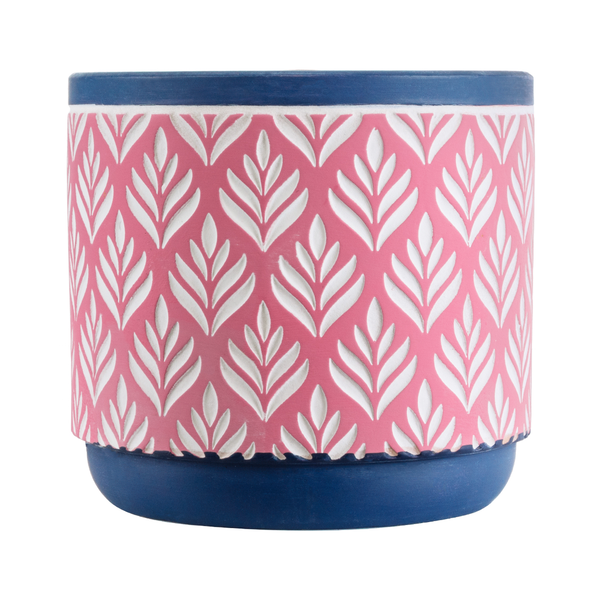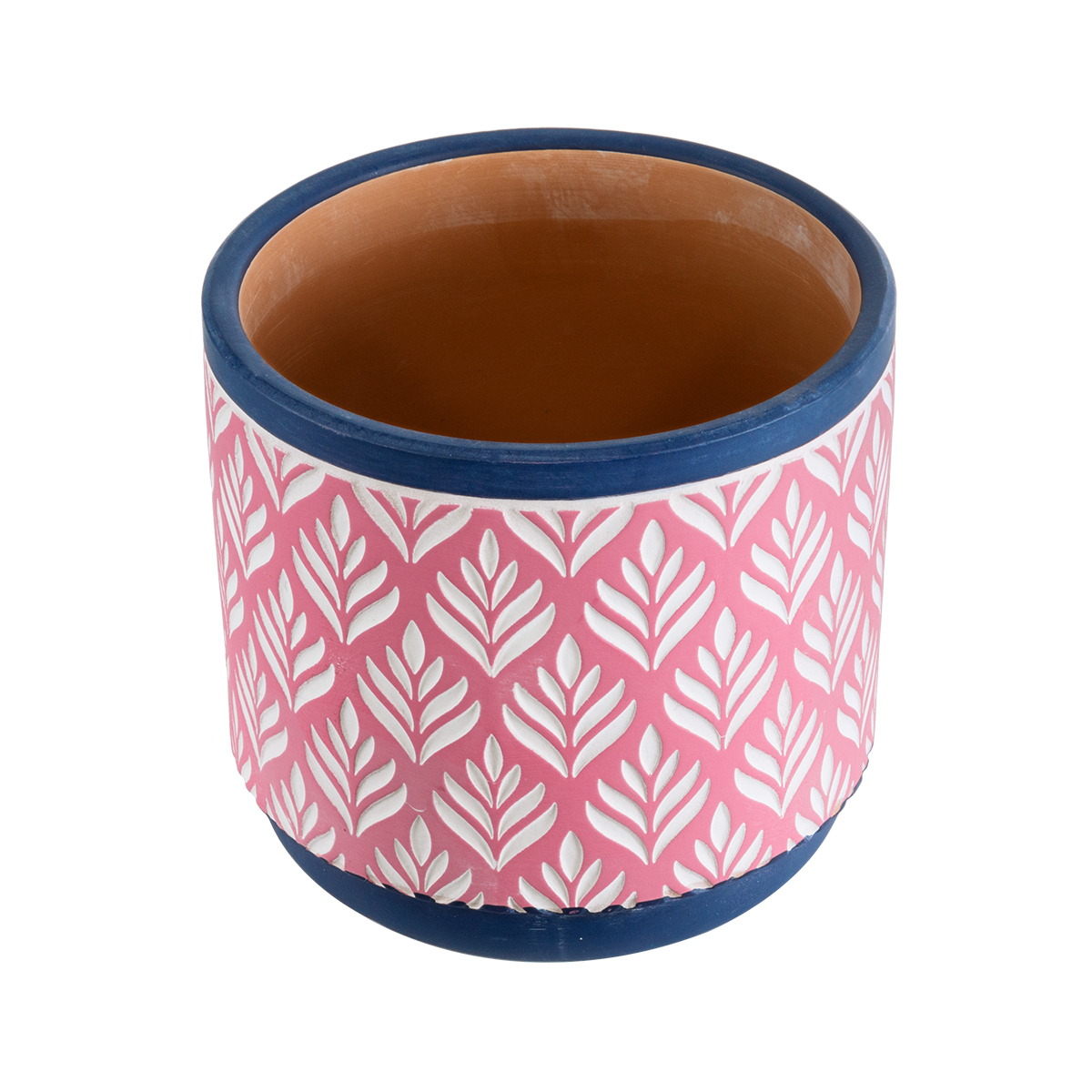 GloboStar® Artificial Garden BOMBAY 20521 Διακοσμητικό Κεραμικό Κασπώ Γλάστρα - Flower Pot Ροζ με Λευκό και Μπλε Φ14.5 x Υ13cm