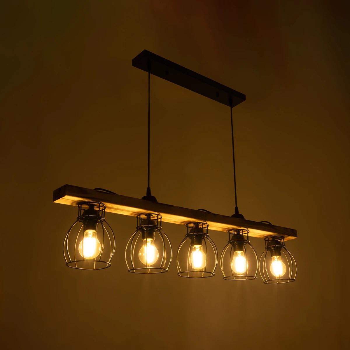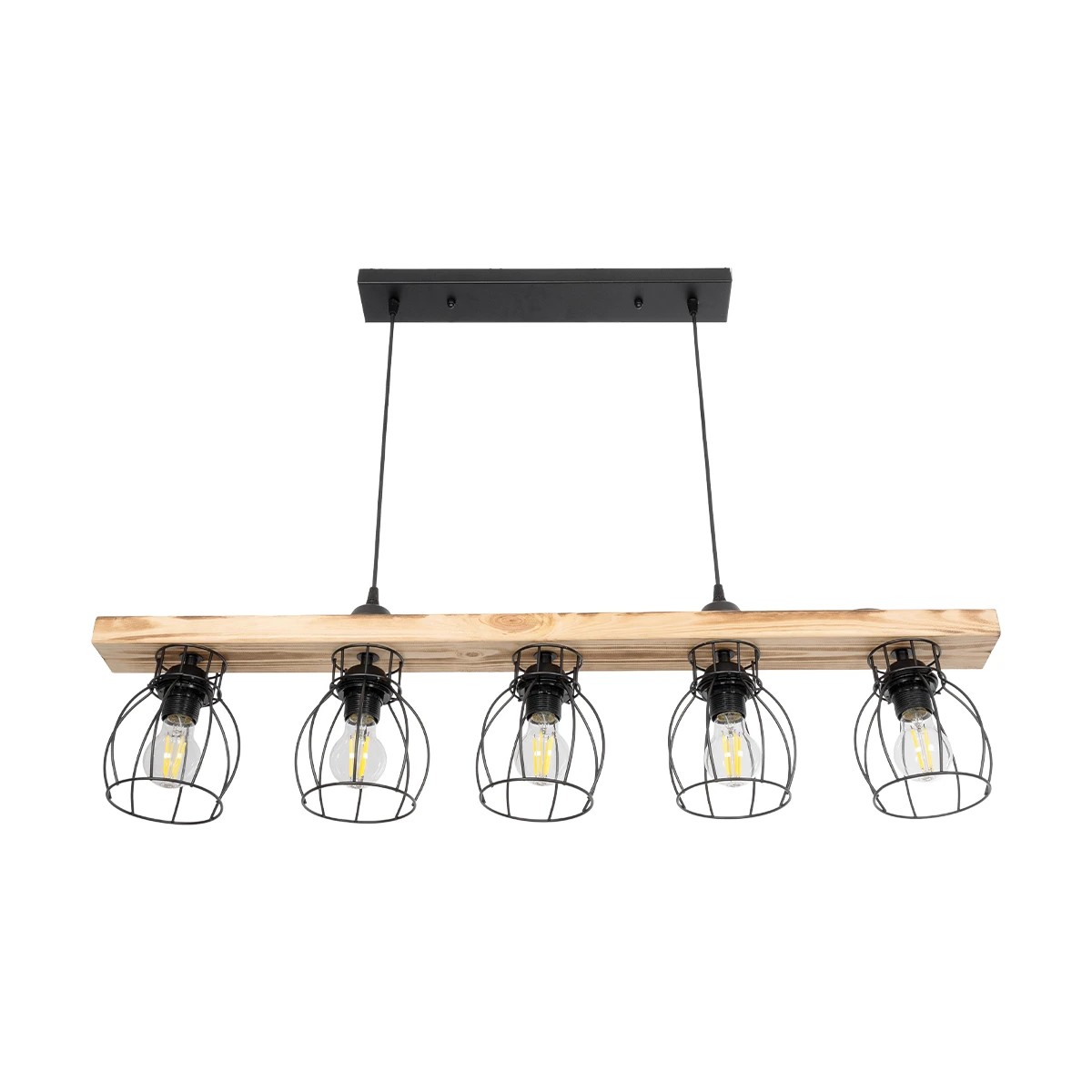 GLOBOSTAR® BARISTA 203-0095 Vintage Κρεμαστό Φωτιστικό Οροφής με Ντουί 5 x E27 AC 220-240V IP20 - Μπεζ & Μαύρο - Μ100 x Π14.5 x Υ26cm