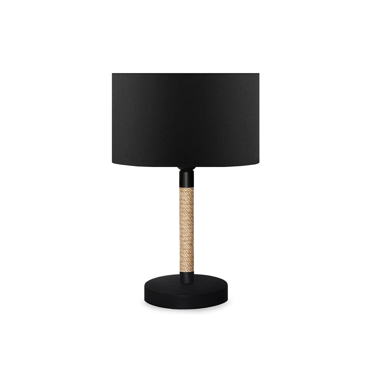 GloboStar® BRONX 201-0062 Μοντέρνο Επιτραπέζιο Φωτιστικό Μονόφωτο 1 x E27 IP20 Μαύρο Ύφασμα, Μπεζ Σχοινί με Μαύρο Μέταλλο - Μ24 x Π24 x Υ37cm