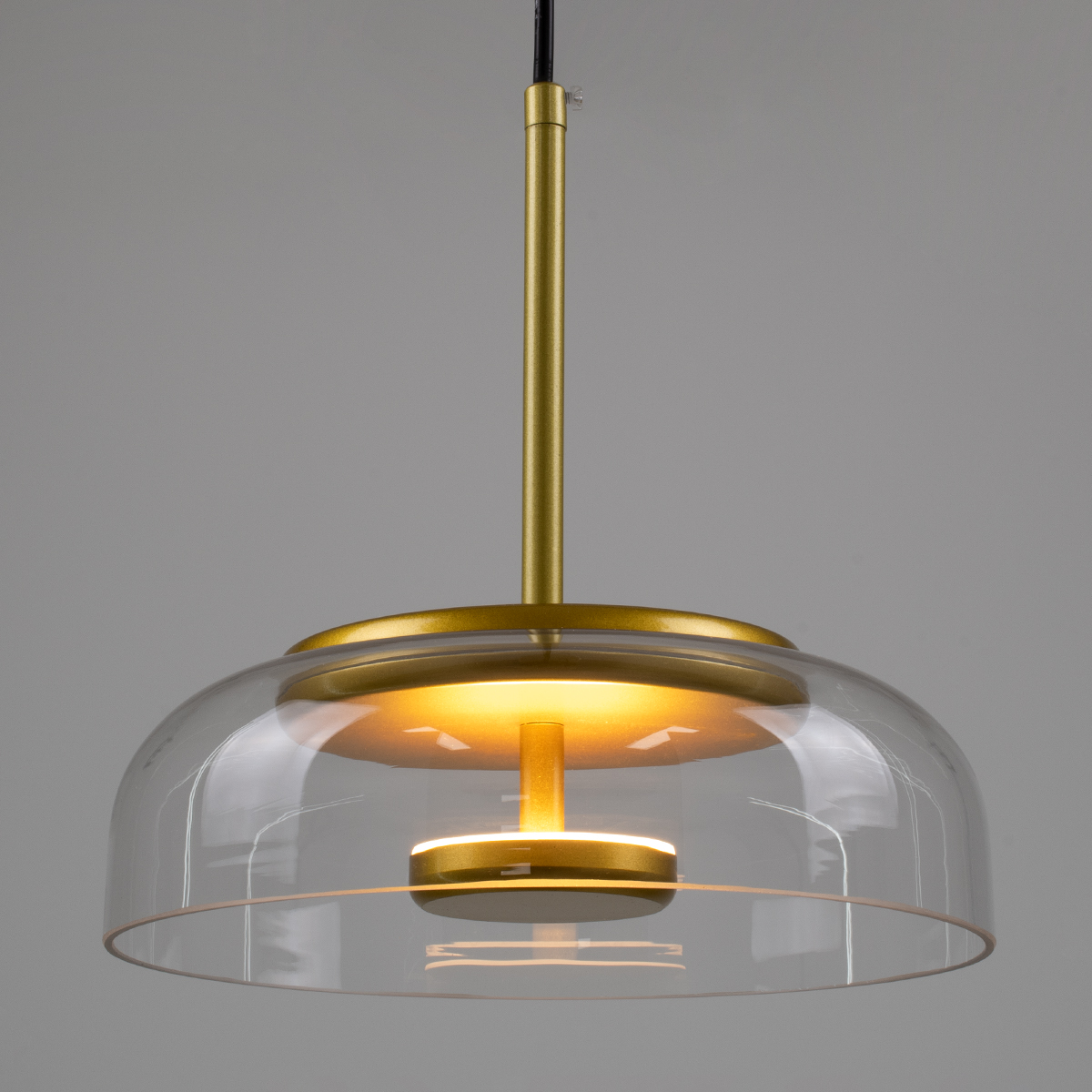 GLOBOSTAR® CHARLOTTE 00742 Μοντέρνο Κρεμαστό Φωτιστικό Οροφής LED 5W 500lm 180° AC 220-240V IP20 Θερμό Λευκό 2700K - Lumileds SMD Chip - Διάφανο & Χρυσό - Μ23 x Π23 x Υ23cm - 2 Χρόνια Εγγύηση