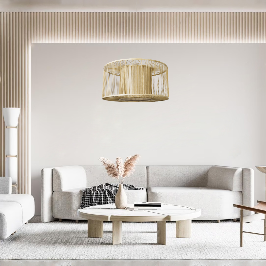 GLOBOSTAR® HIBISCUS 01936 Boho Κρεμαστό Φωτιστικό Οροφής με Ντουί 1 x E27 AC 220-240V IP20 - Μπεζ - Μ80 x Π80 x Υ38cm
