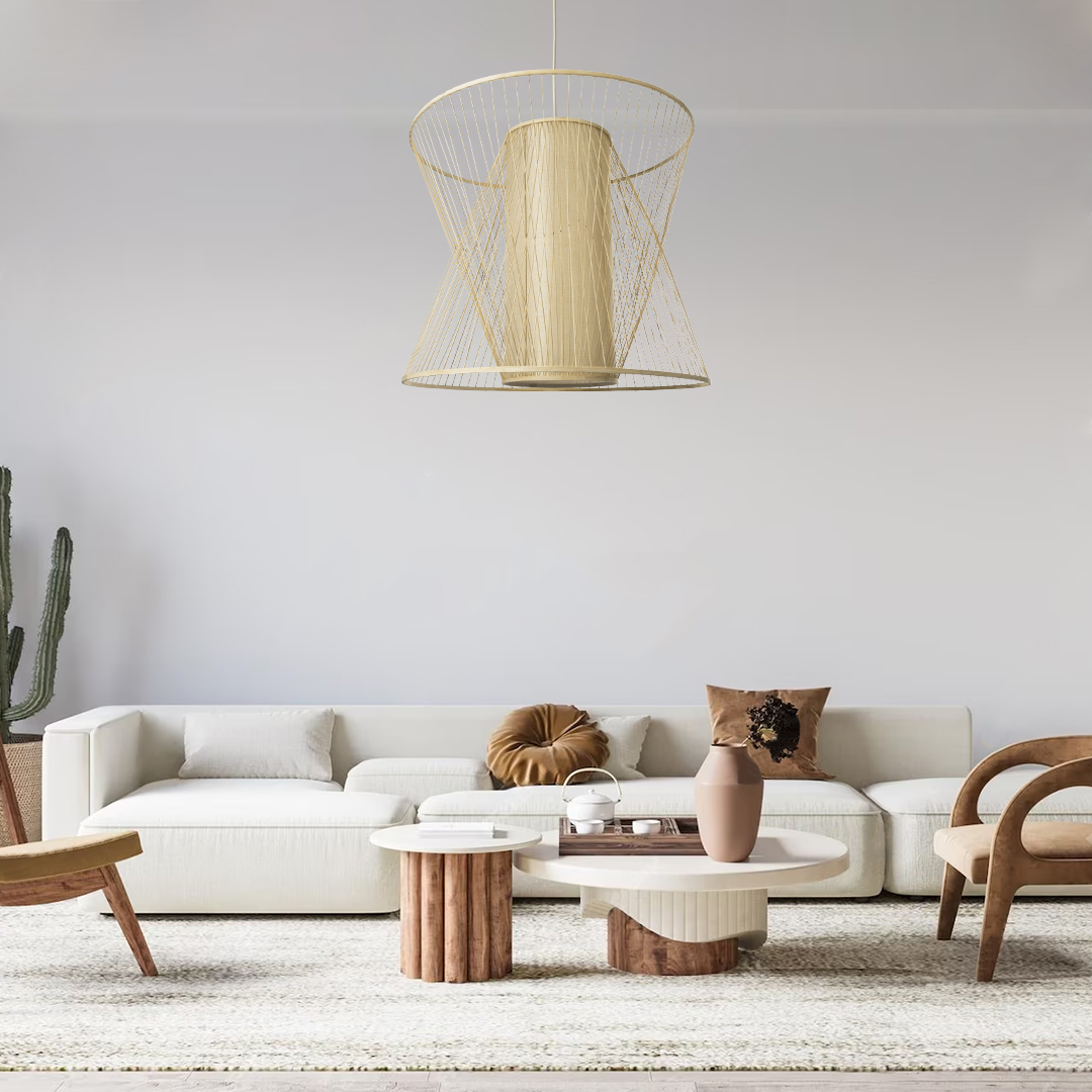 GLOBOSTAR® HIBISCUS 01926 Boho Κρεμαστό Φωτιστικό Οροφής με Ντουί 1 x E27 AC 220-240V IP20 - Μπεζ - Μ100 x Π100 x Υ90cm