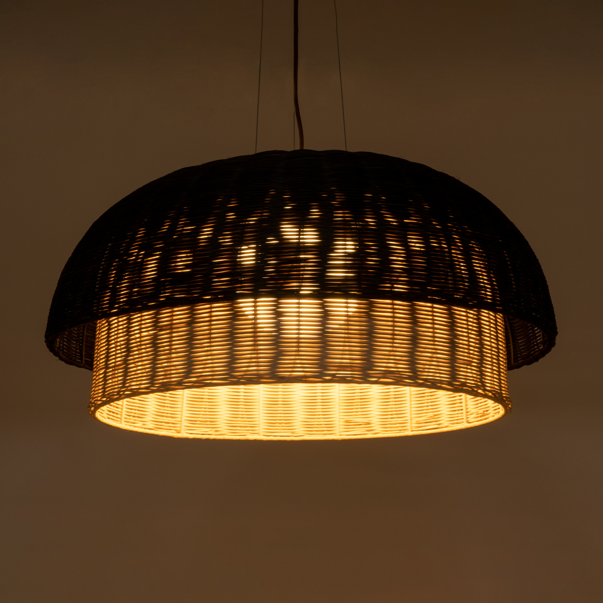 GLOBOSTAR® CORSICA 02216 Boho Κρεμαστό Φωτιστικό Οροφής με Ντουί 1 x E27 AC 220-240V IP20 - Μαύρο & Μπεζ - Μ70 x Π70 x Υ35cm