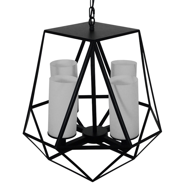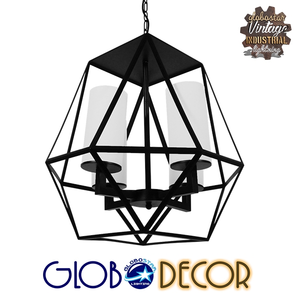 GLOBOSTAR® DASTAR 01001-1 Vintage Κρεμαστό Φωτιστικό Οροφής με Ντουί 4 x E27 AC 220-240V IP20 - Μαύρο & Λευκό - Μ52 x Π52 x Υ53cm