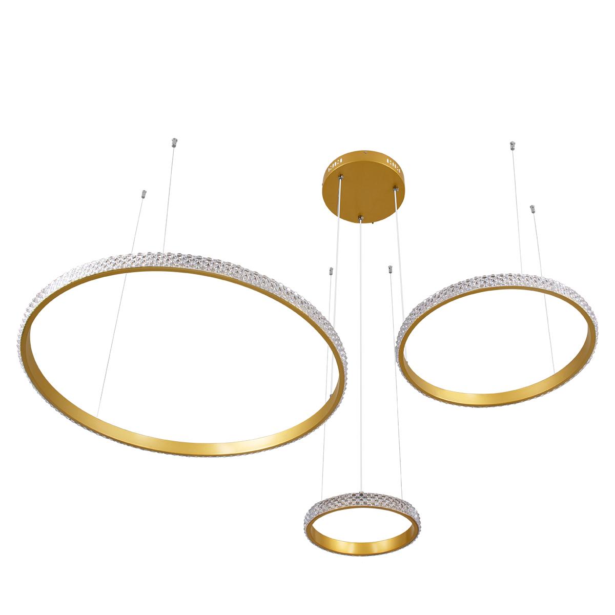 GLOBOSTAR® DIAMOND TRIO 61143 Μοντέρνο Κρεμαστό Φωτιστικό Οροφής LED 100W 12123lm 360° AC 220-240V IP20 Ρυθμιζόμενο Λευκό CCT με Χειριστήριο από 2700K έως 6000K Dimmable - Lumileds SMD Chip - Χρυσό Βούρτσας - Μ110 x Π110 x Υ60cm - 3 Χρόνια Εγγύηση