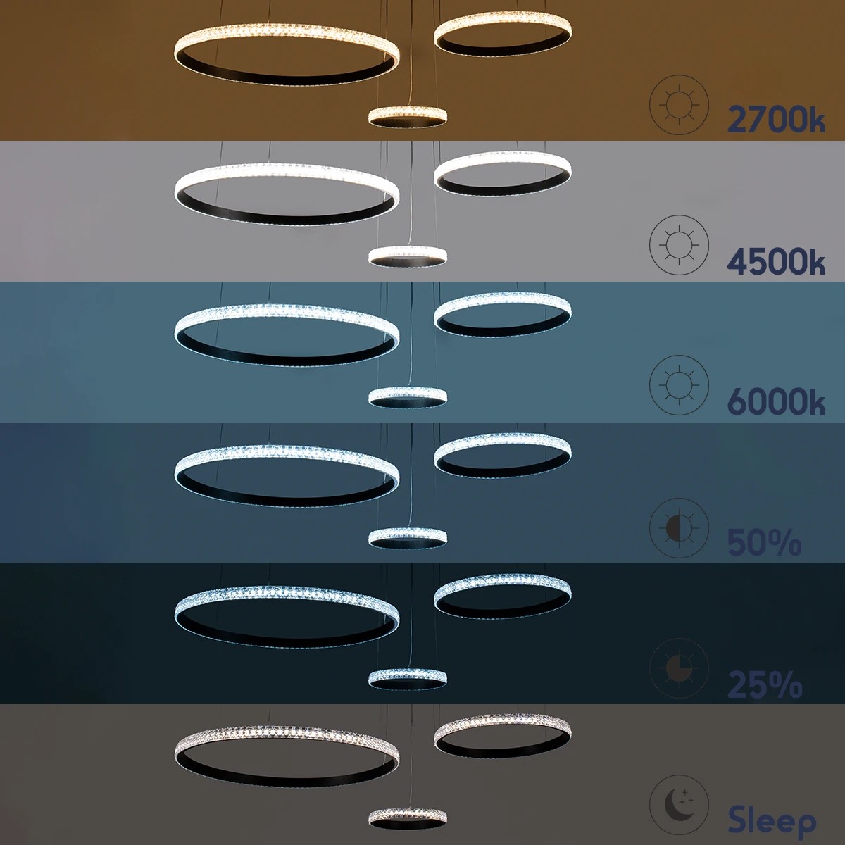 GLOBOSTAR® DIAMOND TRIO 61146 Μοντέρνο Κρεμαστό Φωτιστικό Οροφής LED 150W 18379lm 360° AC 220-240V IP20 Ρυθμιζόμενο Λευκό CCT με Χειριστήριο από 2700K έως 6000K Dimmable - Lumileds SMD Chip - Μαυρό Ματ - Μ170 x Π170 x Υ60cm - 3 Χρόνια Εγγύηση