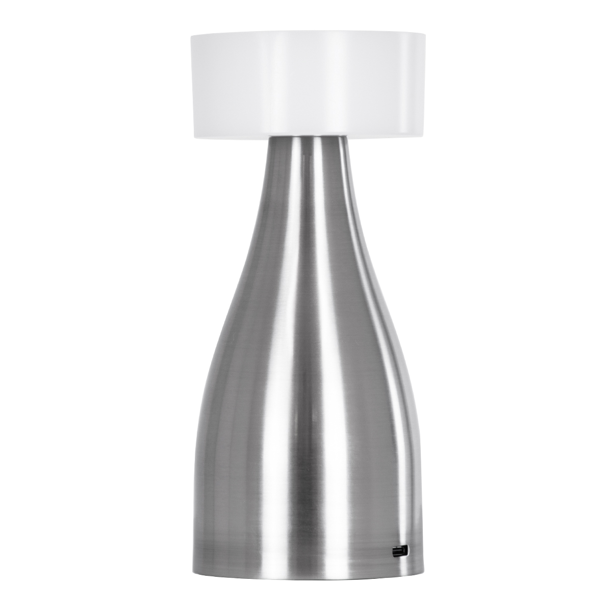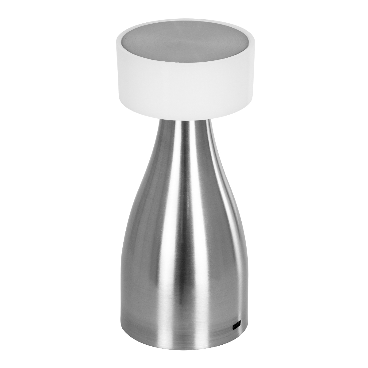 GloboStar® DOLLY 76468 Επαναφορτιζόμενο Επιτραπέζιο Φωτιστικό Πορτατίφ LED 1.5W 105lm 120° DC 5V IP44 CCT Ultra Θερμό 1500K - Φυσικό Λευκό 4500K - Ψυχρό Λευκό 6000K Dimmable Ασημί & Λευκό Πλαστικό - Μ9 x Π9 x Υ21cm - 2 Χρόνια Εγγύηση