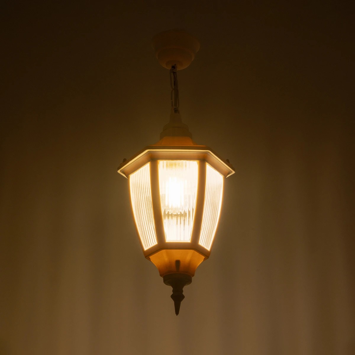 GLOBOSTAR® ENGLAND 202-0014 Vintage Κρεμαστό Φωτιστικό Οροφής με Ντουί 1 x E27 AC 220-240V IP44 - Λευκό - Μ20 x Π20 x Υ35cm