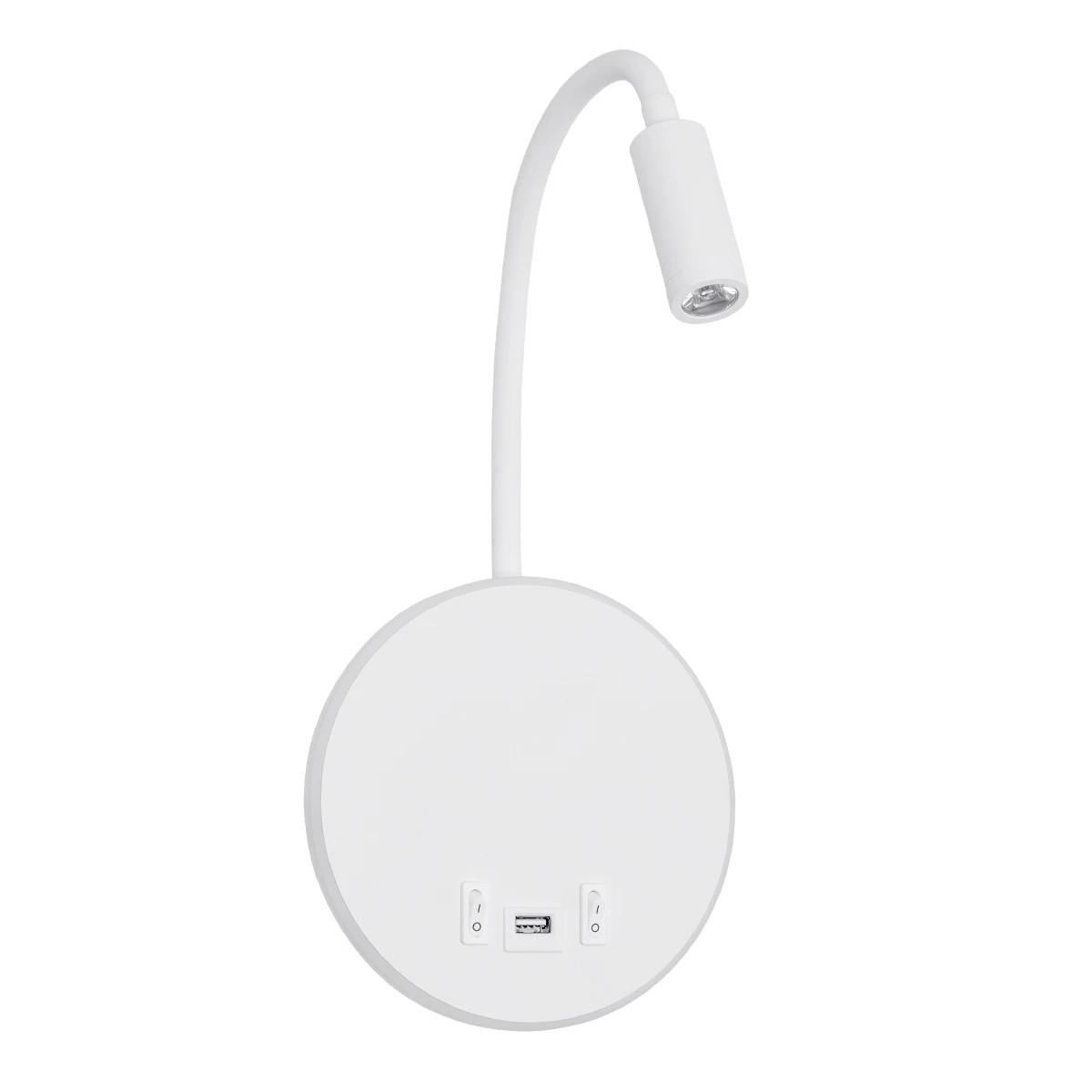 GLOBOSTAR® GOOSE 61693 Μοντέρνο Φωτιστικό Τοίχου - Απλίκα Ξενοδοχείου Reading Light με Φορτιστή USB 3A LED 6W 600lm 36° & 360° AC 220-240V IP20 Θερμό Λευκό 2700K - Bridgelux COB Chip & TÜV SÜD Driver - Λευκό Ματ - Μ15.5 x Π22.5 x Υ30cm - 3 Χρόνια Εγγύηση