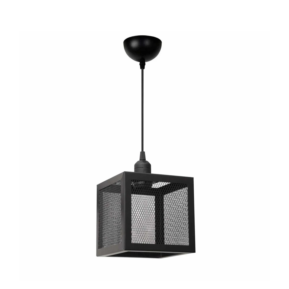 GloboStar® JAULA 204-0181 Μοντέρνο Κρεμαστό Φωτιστικό Οροφής Μονόφωτο 1 x E27 AC 220-240V IP20 Μαύρο - Μ17 x Π17 x Υ23cm