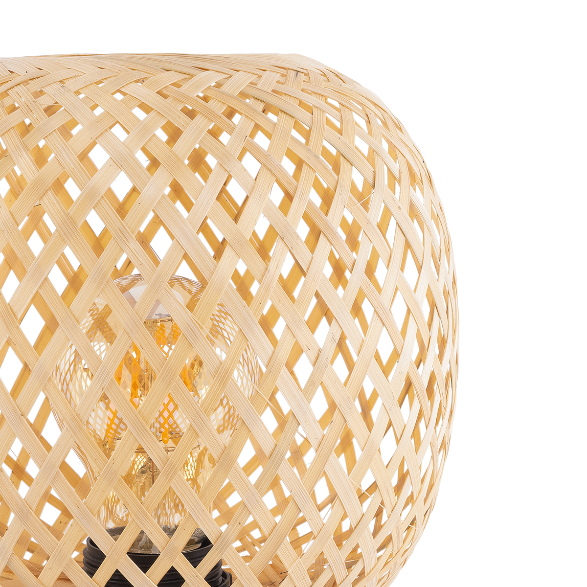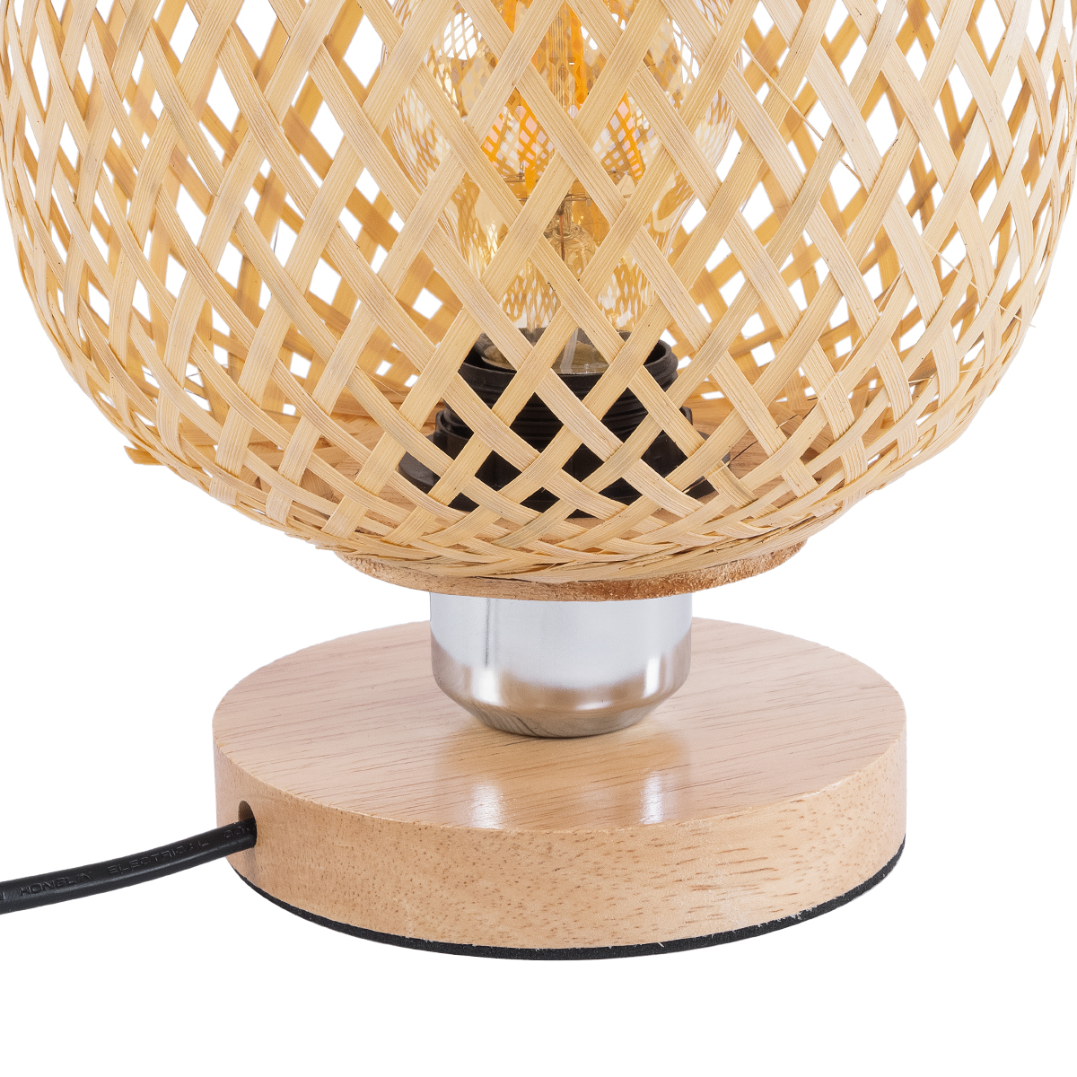GloboStar® KERRY 01981 Μοντέρνο Επιτραπέζιο Φωτιστικό Πορτατίφ Μονόφωτο 1 x E27 AC220-240V IP20 - Φ18 x Υ25cm - Μπεζ Ξύλινο Μπαμπού Πλέγμα