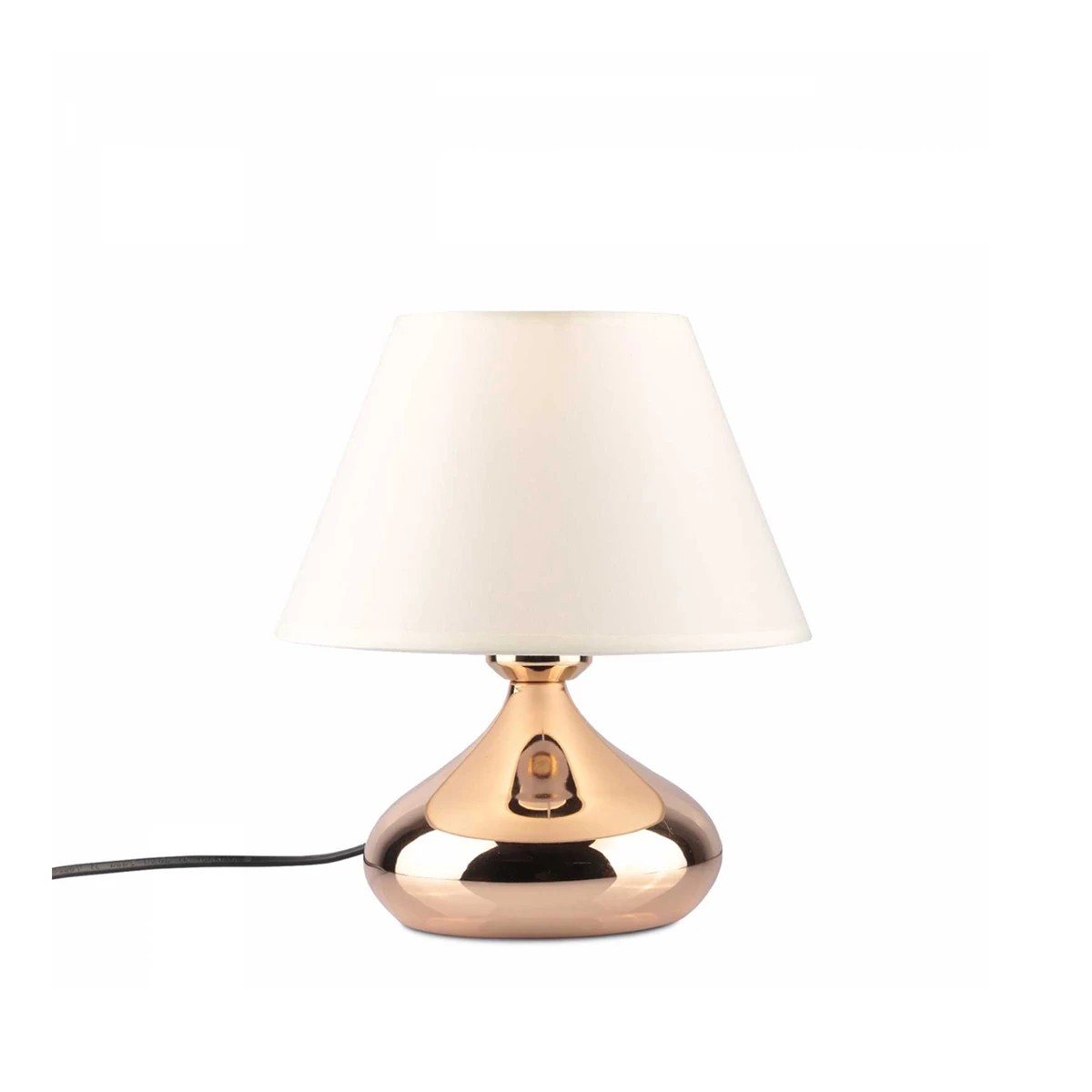 GloboStar® KORG 204-0184 Μοντέρνο Επιτραπέζιο Φωτιστικό Πορτατίφ Μονόφωτο 1 x E27 AC 220-240V IP20 Μπεζ & Χάλκινο - Μ17 x Π17 x Υ23cm