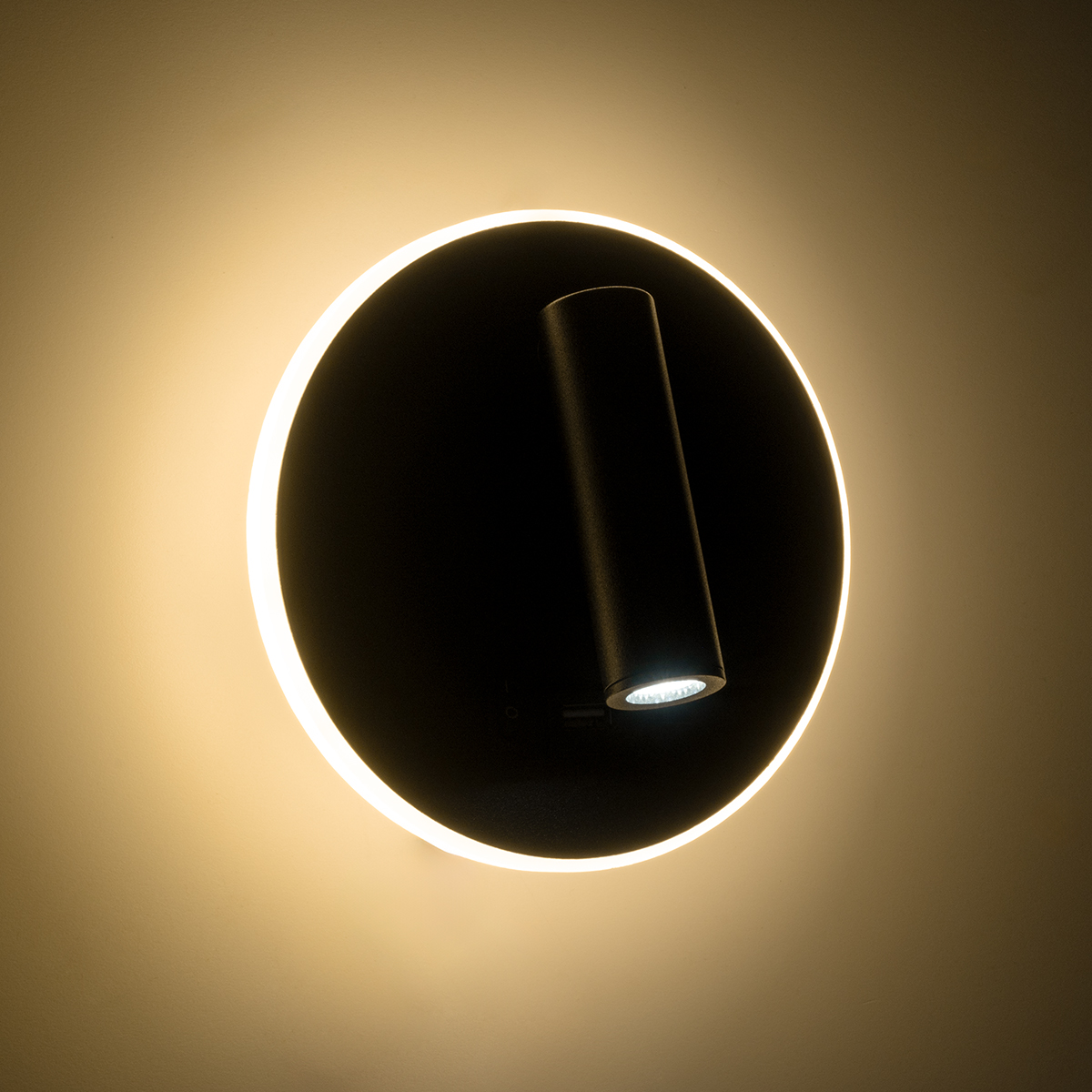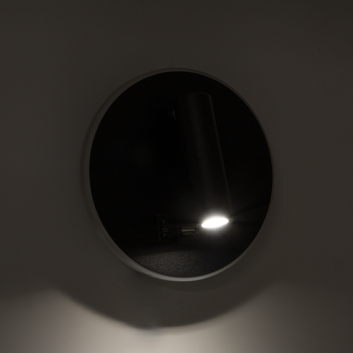 GLOBOSTAR® LADY-R 60938 Μοντέρνο Φωτιστικό Τοίχου - Απλίκα Ξενοδοχείου Reading Light με Φορτιστή USB 3A LED 6W 600lm 36° & 360° AC 220-240V IP20 Φυσικό Λευκό 4500K - Bridgelux COB Chip & TÜV SÜD Driver - Μαύρο Ματ - Μ15 x Π15 x Υ7cm - 3 Χρόνια Εγγύηση