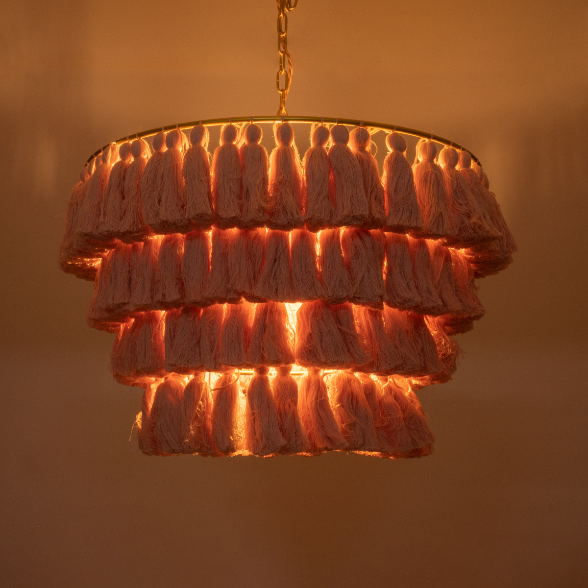 GLOBOSTAR® MISSOULA 02090 Boho Κρεμαστό Φωτιστικό Οροφής με Ντουί 1 x E27 AC 220-240V IP20 - Ροζ & Χρυσό - Μ60 x Π60 x Υ40cm