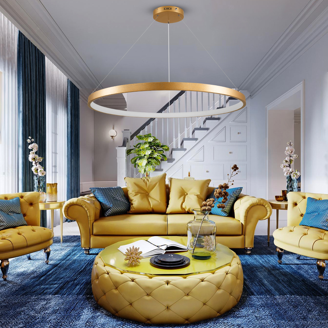 GLOBOSTAR® NEMESIS 61166 Μοντέρνο Κρεμαστό Φωτιστικό Οροφής LED 75W 8743lm 360° AC 220-240V IP20 Ρυθμιζόμενο Λευκό CCT με Χειριστήριο από 2700K έως 6000K Dimmable - Lumileds SMD Chip - Χρυσό Βούρτσας - Μ100 x Π100 x Υ4cm - 3 Χρόνια Εγγύηση