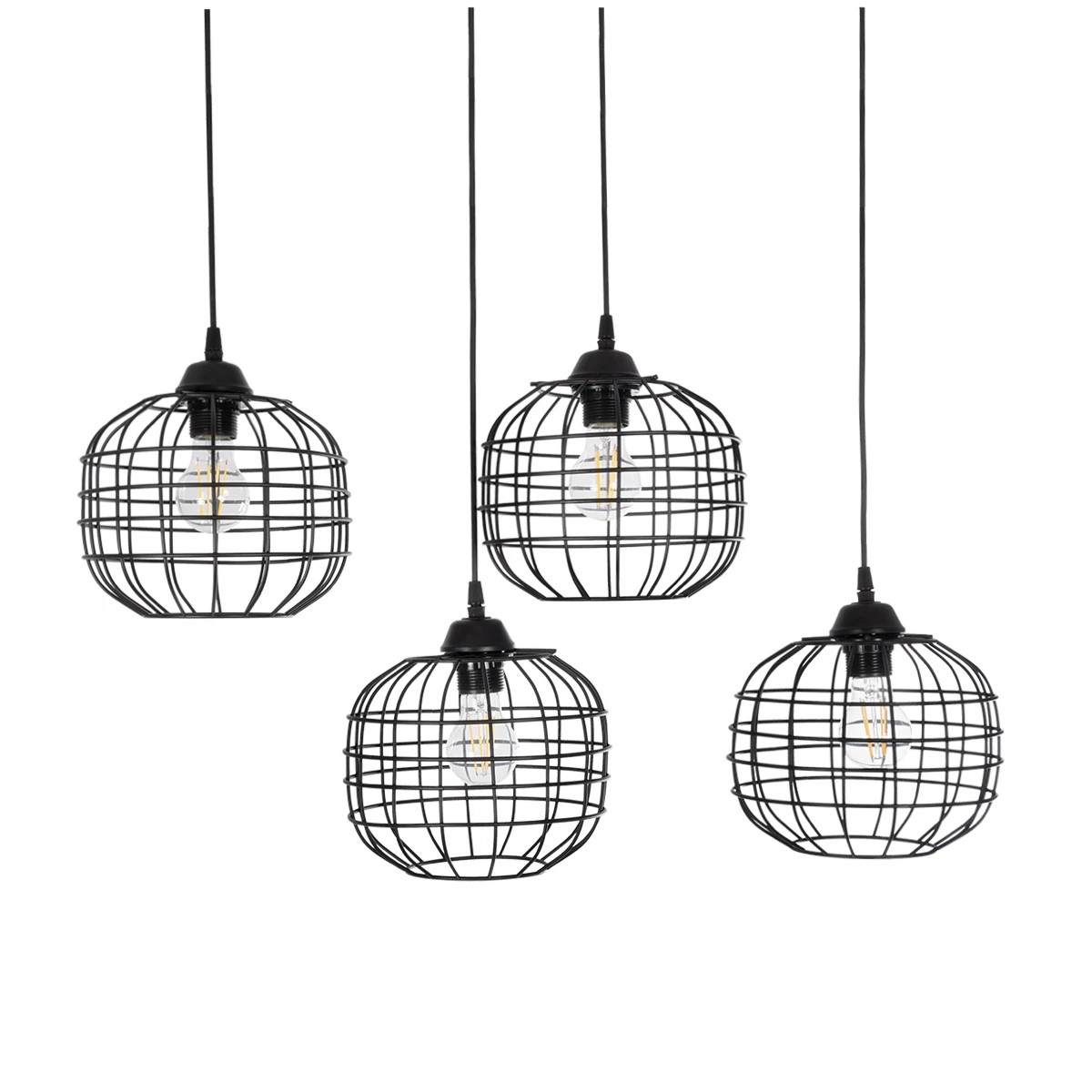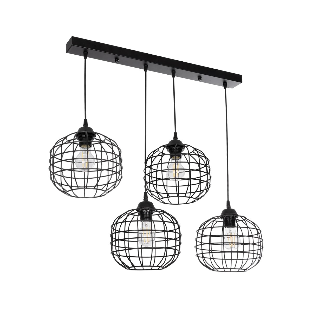 GLOBOSTAR® PULSAR 201-0103 Vintage Κρεμαστό Φωτιστικό Οροφής με Ντουί 4 x E27 AC 220-240V IP20 - Μαύρο - Μ80 x Π22 x Υ46cm