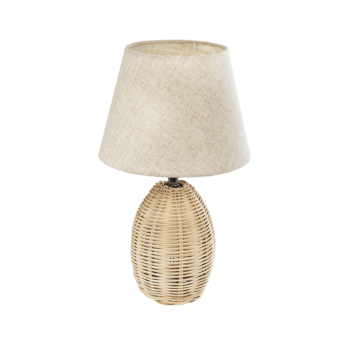 GloboStar® HASUMI 01956 Boho Επιτραπέζιο Φωτιστικό Πορτατίφ Μονόφωτο 1 x E27 AC220-240V IP20 - Φ23 x Υ40cm - Μπεζ Ξύλινο Ρατάν Πλέγμα με Μπεζ Καπέλο
