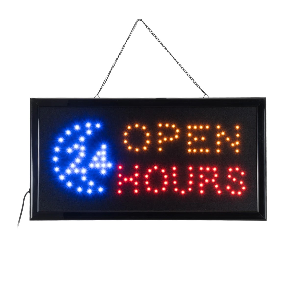 GLOBOSTAR® SIGN 75682 Διακοσμητικό Φωτιστικό Τοίχου Ένδειξης / Σήμανσης OPEN 24 HOURS LED 5W 150lm 120° AC 220-240V IP20 Πολύχρωμο - Μαύρο - Μ48 x Π25 x Υ2cm - 2 Χρόνια Εγγύηση