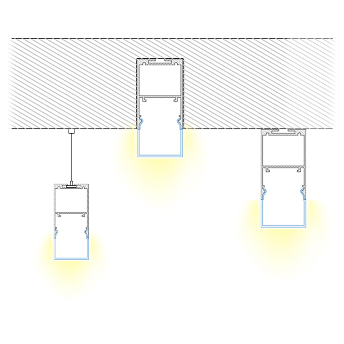 GloboStar® SURFACEPENDANT-PROFILE 70832-1M Προφίλ Αλουμινίου - Βάση & Ψύκτρα Ταινίας LED με Λευκό Γαλακτερό Κάλυμμα - Επιφανειακή & Κρεμαστή Χρήση - Πατητό Κάλυμμα - Μαύρο - 1 Μέτρο - Μ100 x Π3.5 x Υ7.4cm