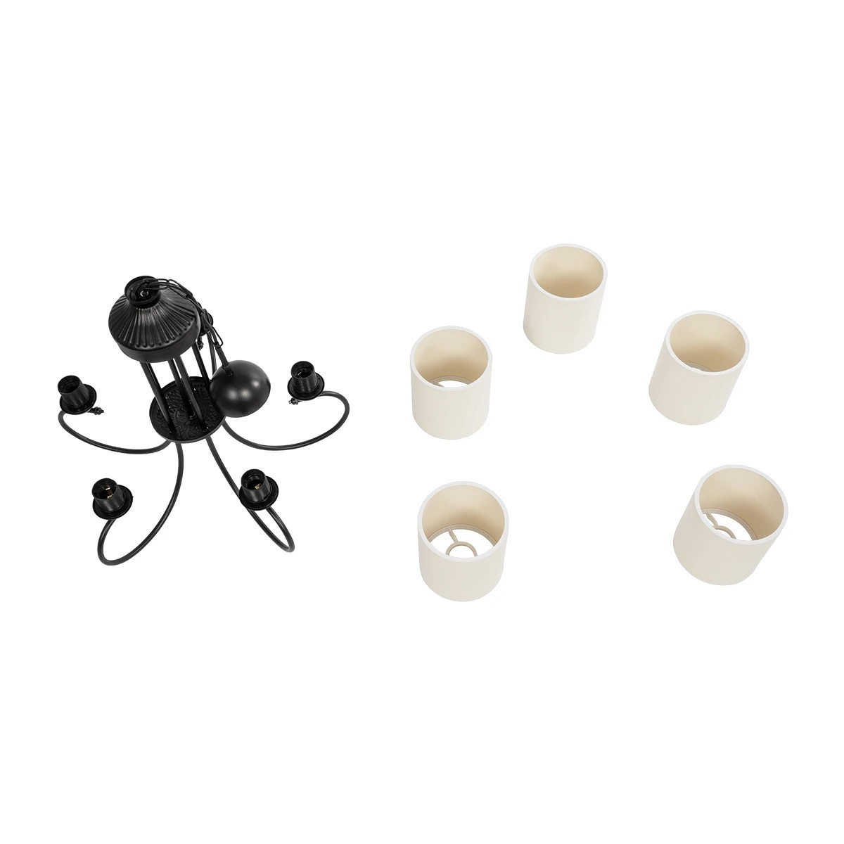 GLOBOSTAR® TRITON 203-0253 Vintage Κρεμαστό Φωτιστικό Οροφής με Ντουί 5 x E27 AC 220-240V IP20 - Μαύρο & Μπεζ - Μ50 x Π50 x Υ48cm