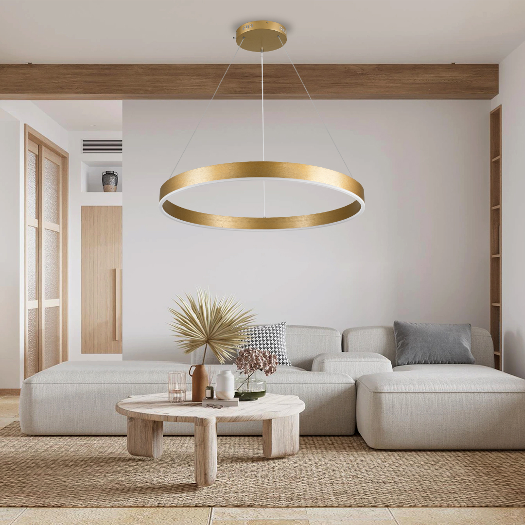 GLOBOSTAR® VENOM 61181 Μοντέρνο Κρεμαστό Φωτιστικό Οροφής LED 67W 7863lm 120° AC 220-240V IP20 Ρυθμιζόμενο Λευκό CCT με Χειριστήριο από 2700K έως 6000K Dimmable - Lumileds SMD Chip - Χρυσό Βούρτσας - Μ80 x Π80 x Υ6.5cm - 3 Χρόνια Εγγύηση