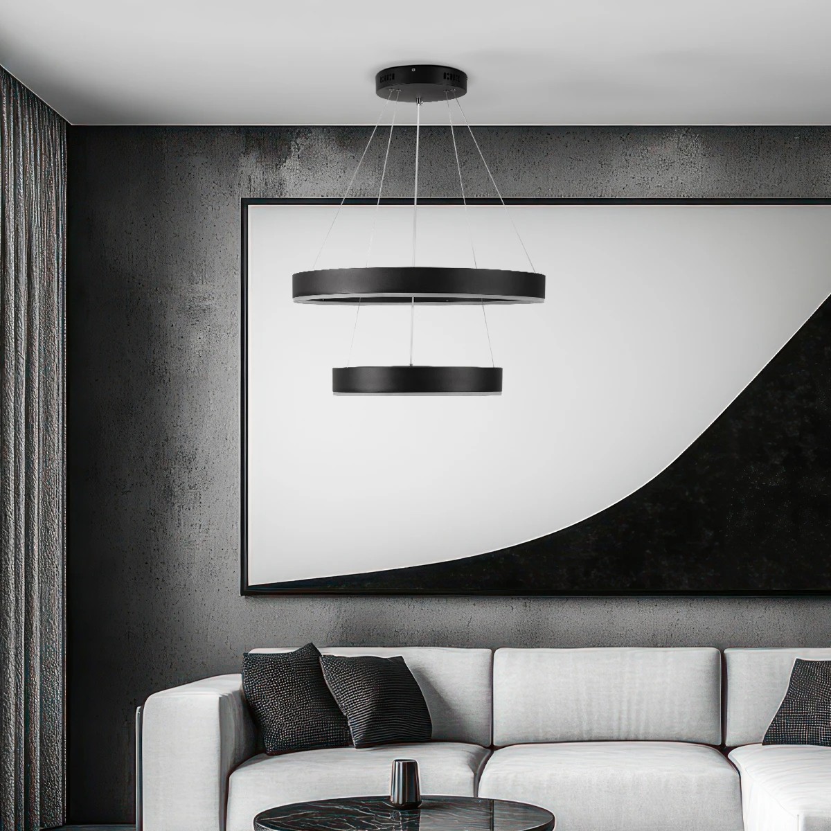 kelvo® VENOM 61185 Μοντέρνο Κρεμαστό Φωτιστικό Οροφής LED 75W 8818lm 120° AC 220-240V IP20 Ρυθμιζόμενο Λευκό CCT με Χειριστήριο από 2700K έως 6000K Dimmable - Lumileds SMD Chip - Μαύρο Ματ - Μ60 x Π60 x Υ40cm - 3 Χρόνια Εγγύηση
