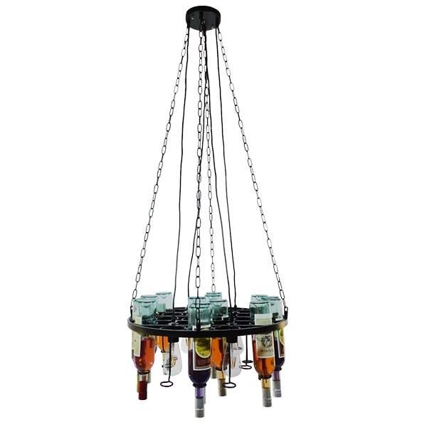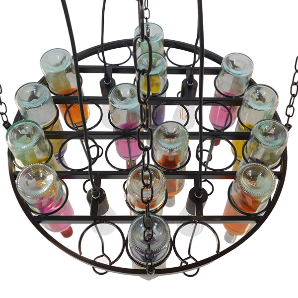- Τεχνοτροπία Φωτιστικού: Μεταλλικό Πολυέλαιος με Γυάλινα Μπουκάλια