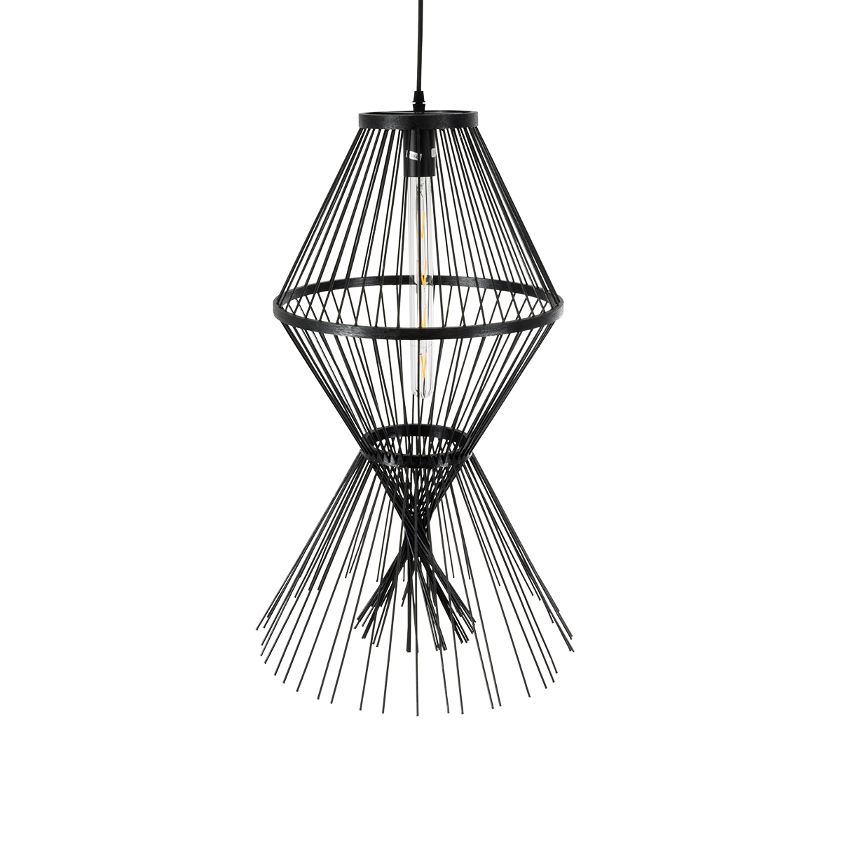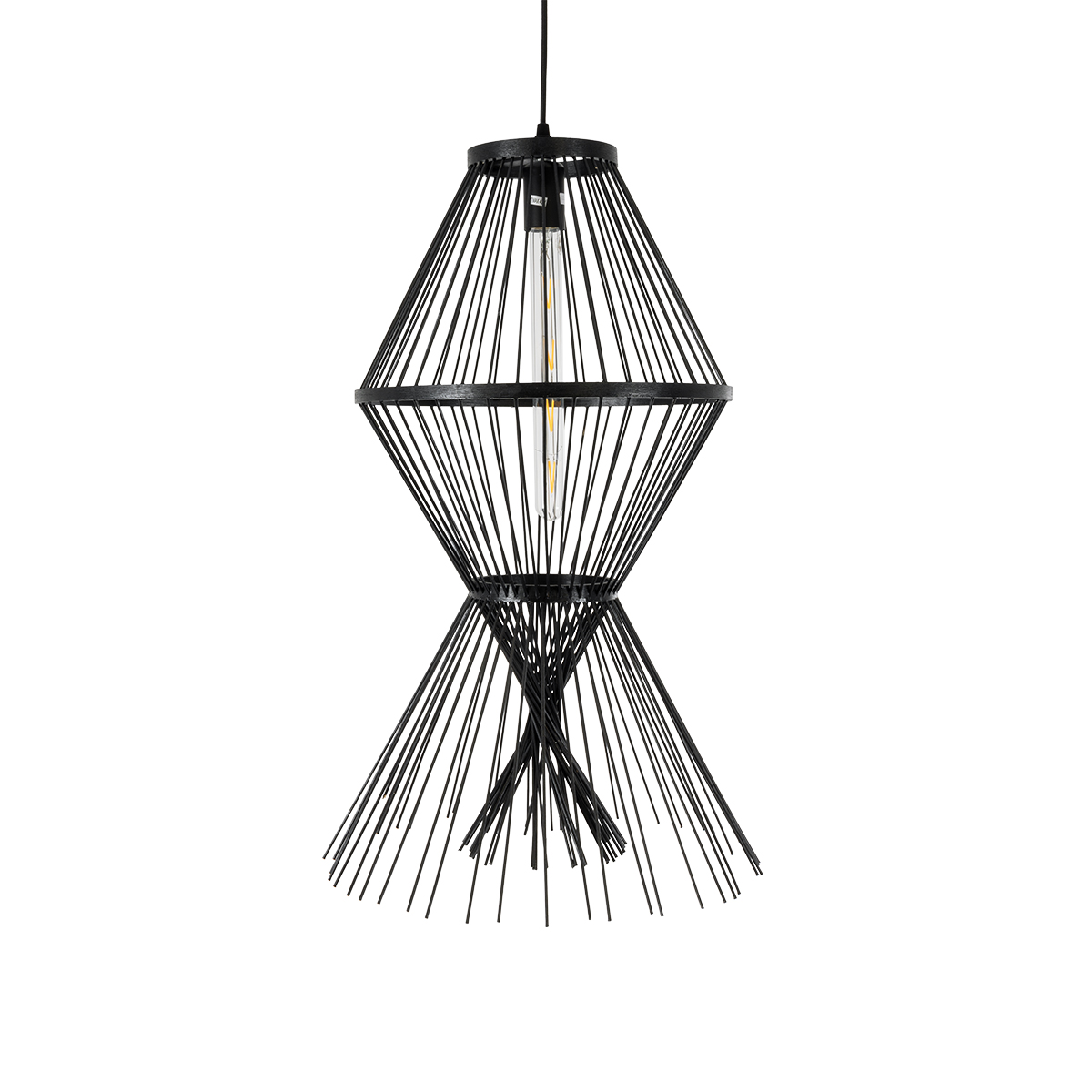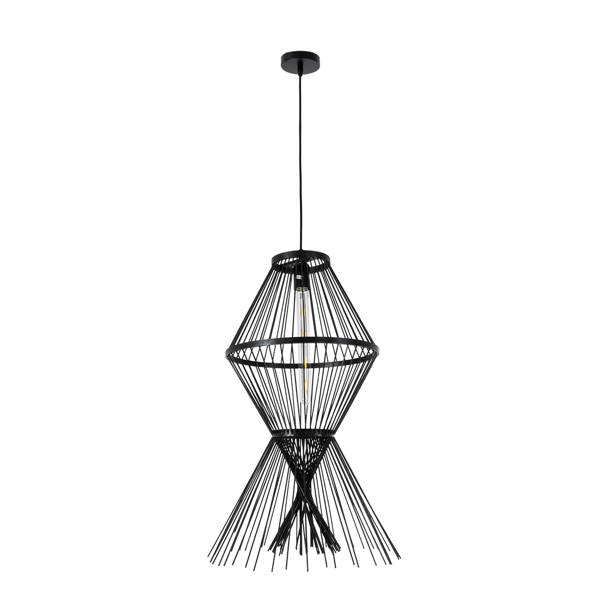 GLOBOSTAR® YOSHI 01929 Boho Κρεμαστό Φωτιστικό Οροφής με Ντουί 1 x E27 AC 220-240V IP20 - Μαύρο - Μ35 x Π35 x Υ60cm