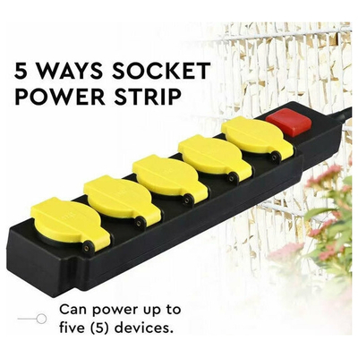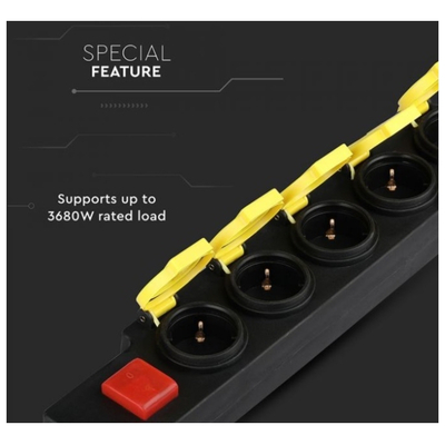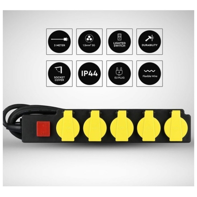 V-TAC Πολύπριζο Σούκο 5 Θέσεων με Καπάκια Αδιάβροχο IP44 3m Καλώδιο και Διακόπτη Μαύρο-Κίτρινο 8813