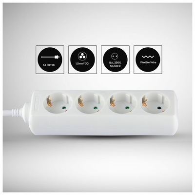 V-TAC Πολύπριζο 4 Θέσεων με 3×1,5mm και 1,5m Καλώδιο Άσπρο 8756