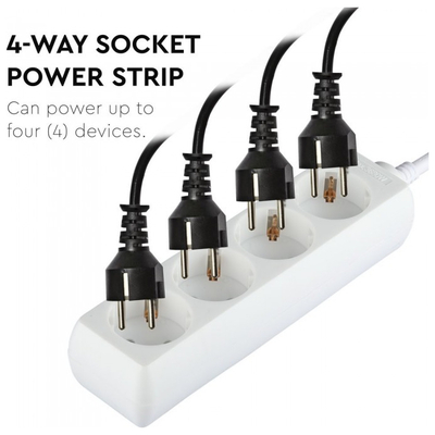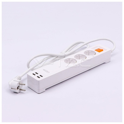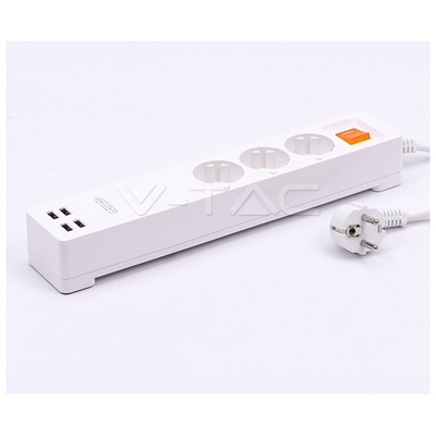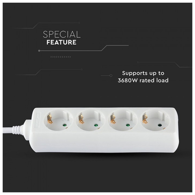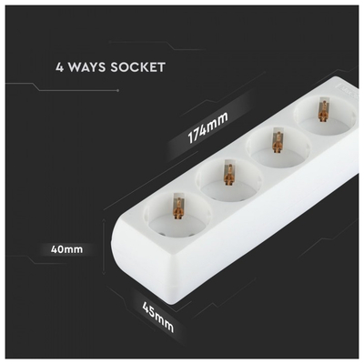 V-TAC Πολύμπριζο Σούκο Λευκό 4 Θέσεων με 3m Καλώδιο Χωρίς Διακόπτη 8757