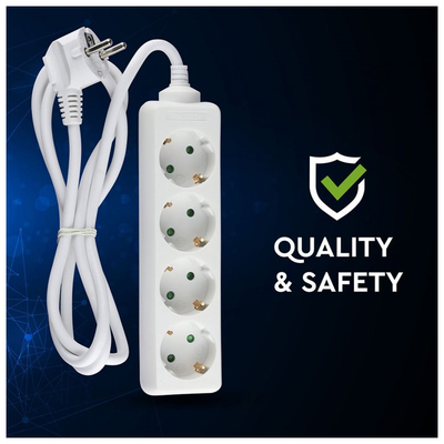 V-TAC Πολύμπριζο Σούκο Λευκό 4 Θέσεων Σούκο και 4 Διπολικά με 1,5m Καλώδιο και Διακόπτη 8772