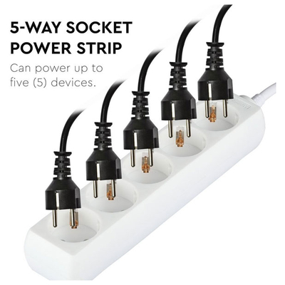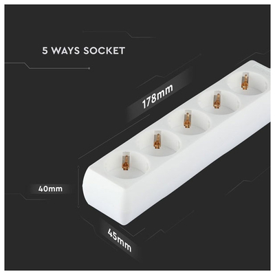 V-TAC Πολύπριζο 5 Θέσεων με 3×1,5mm και 1,5m Καλώδιο Άσπρο 8758