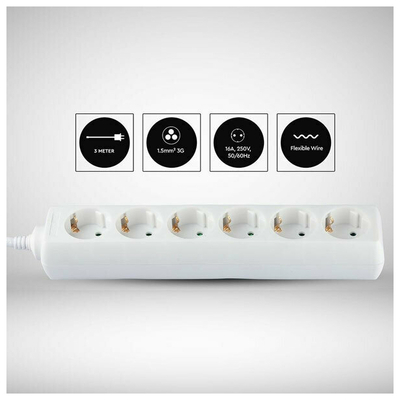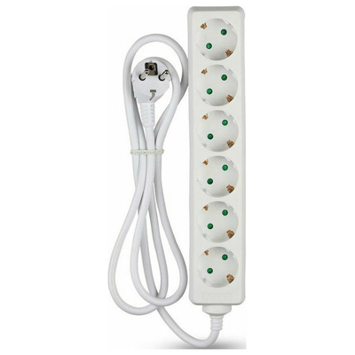V-TAC Πολύπριζο 6 Θέσεων με 3×1,5mm και 3m Καλώδιο Άσπρο 8761
