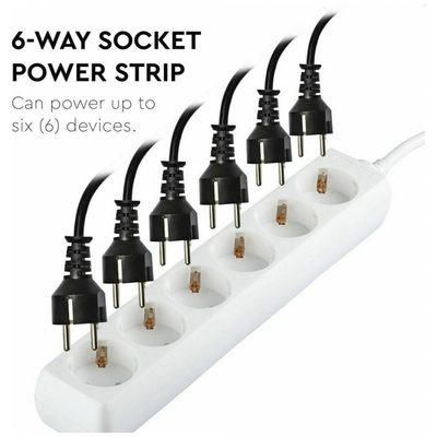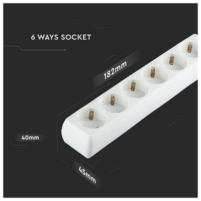 V-TAC Πολύμπριζο Σούκο Λευκό 6 Θέσεων με 1,5m Καλώδιο και Διακόπτη 8768