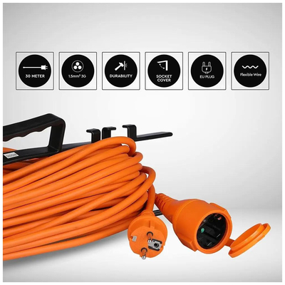 V-TAC Καλώδιο επέκτασης 10/16A Ιυποδοχή Schuko με καλώδιο VDE H05VV-F 3G1,5mm 30m με βύσμα 16A