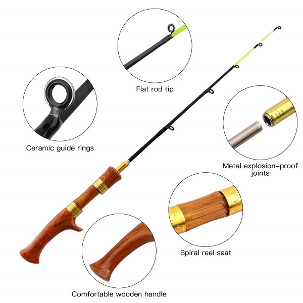 Καλάμι ψαρέματος για καθετή, δίσπαστο, κατασκευασμένο από ενισχυμένες ίνες υψηλής αντοχής, οπλισμένο με οδηγούς και εργονομική λαβή υψηλής ποιότητας.
