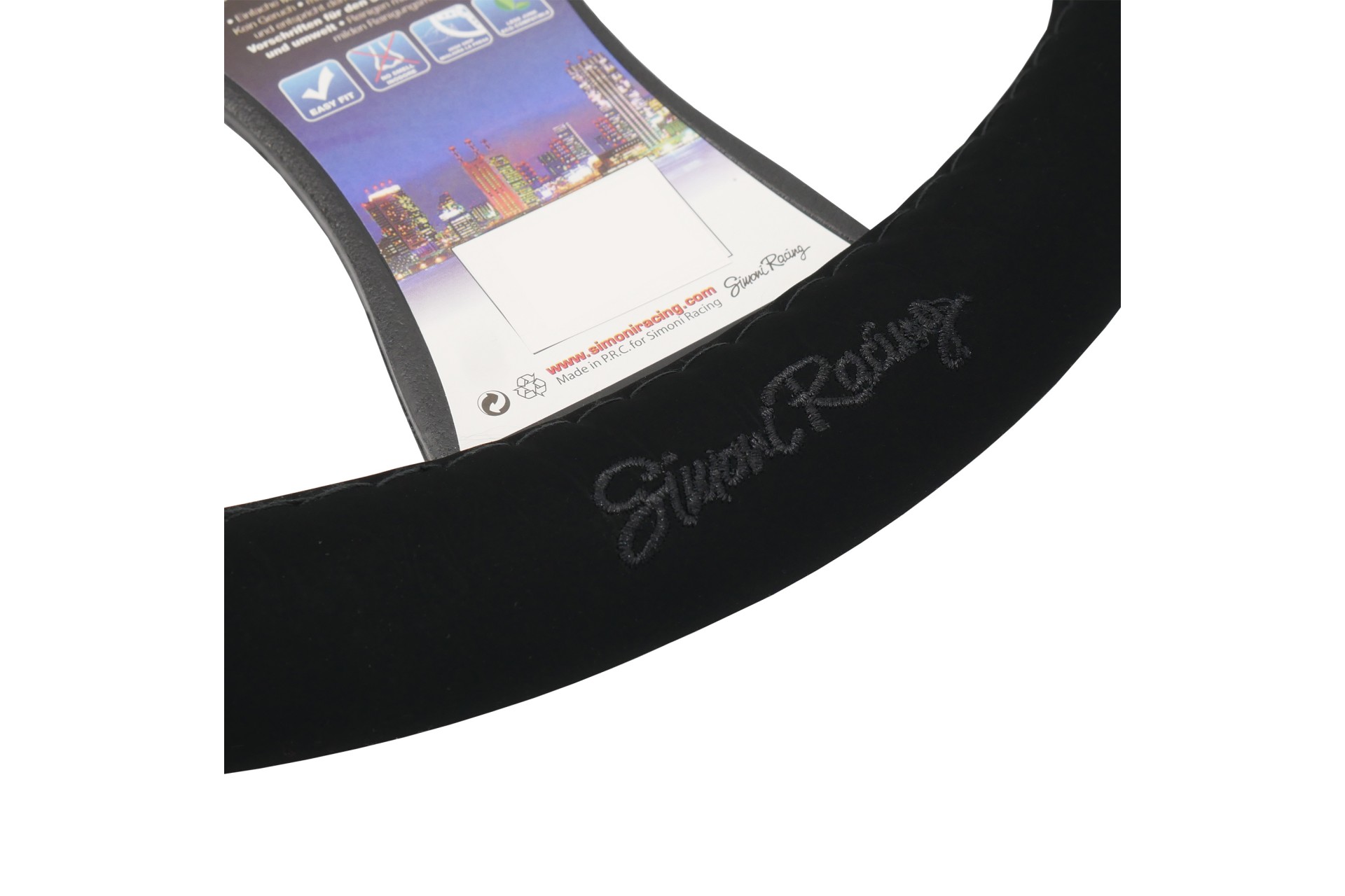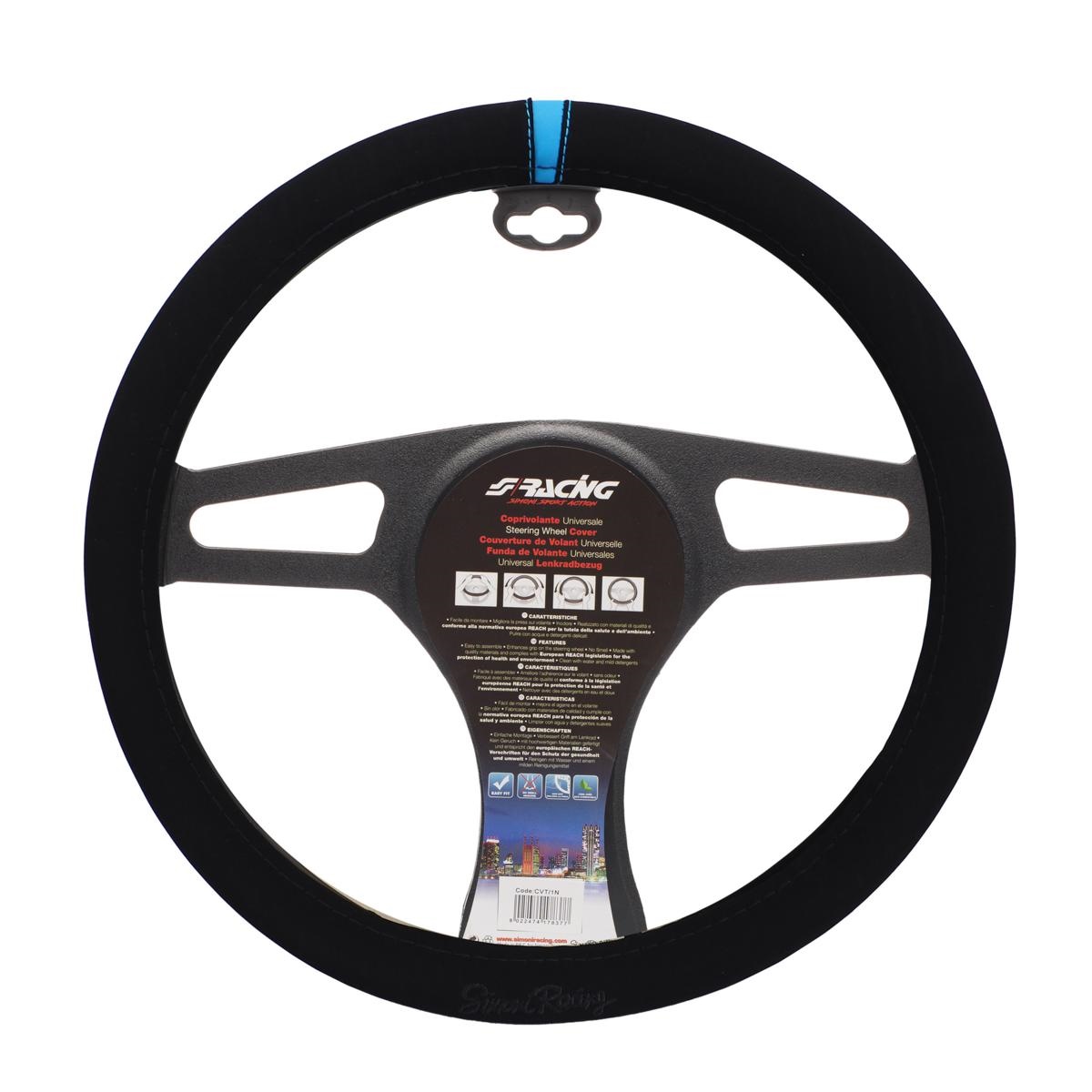 Κάλυμμα τιμονιού CARRERA LOOK BLUE μαύρο με λογότυπο, από την εταιρεία SIMONI RACING, ιταλικής προέλευσης.