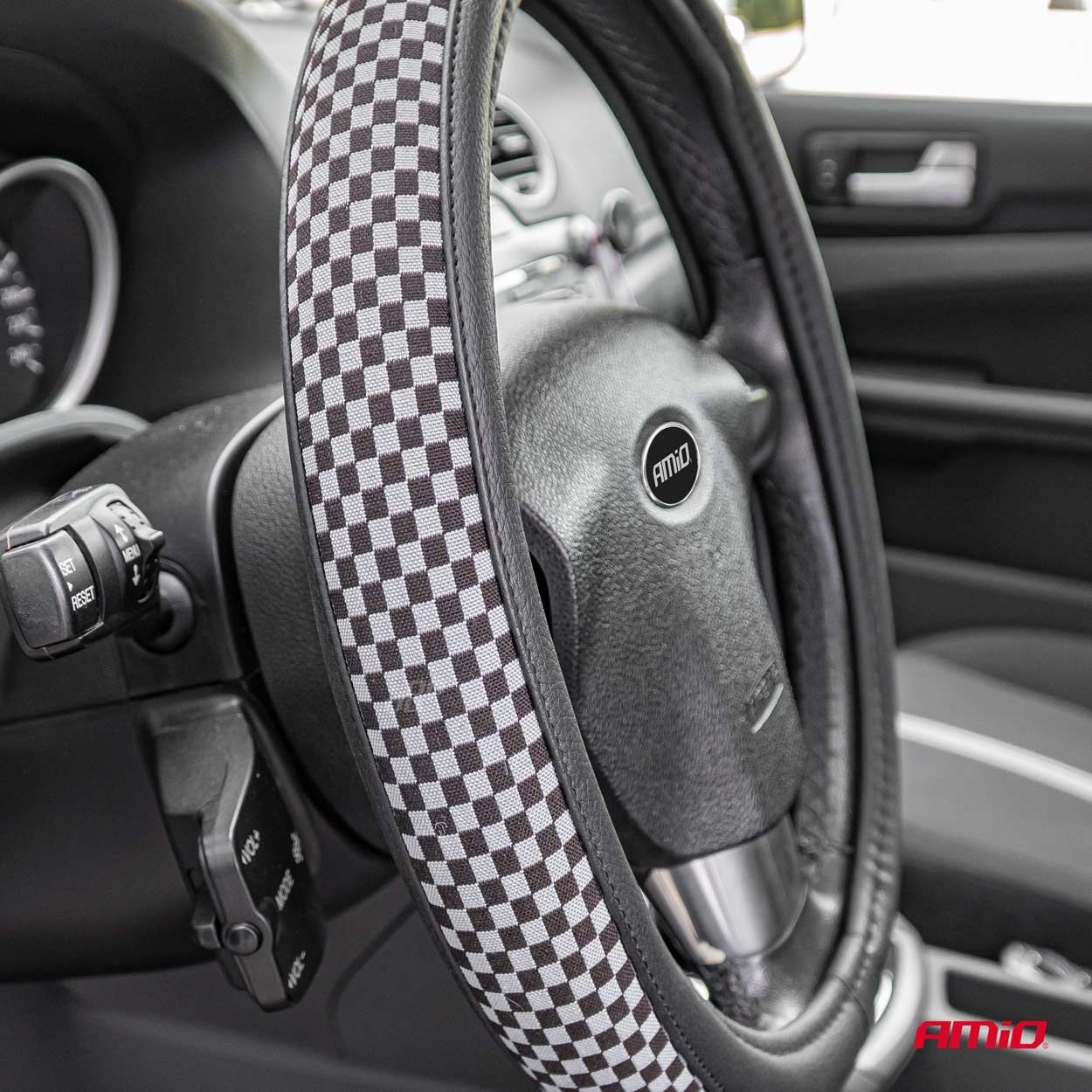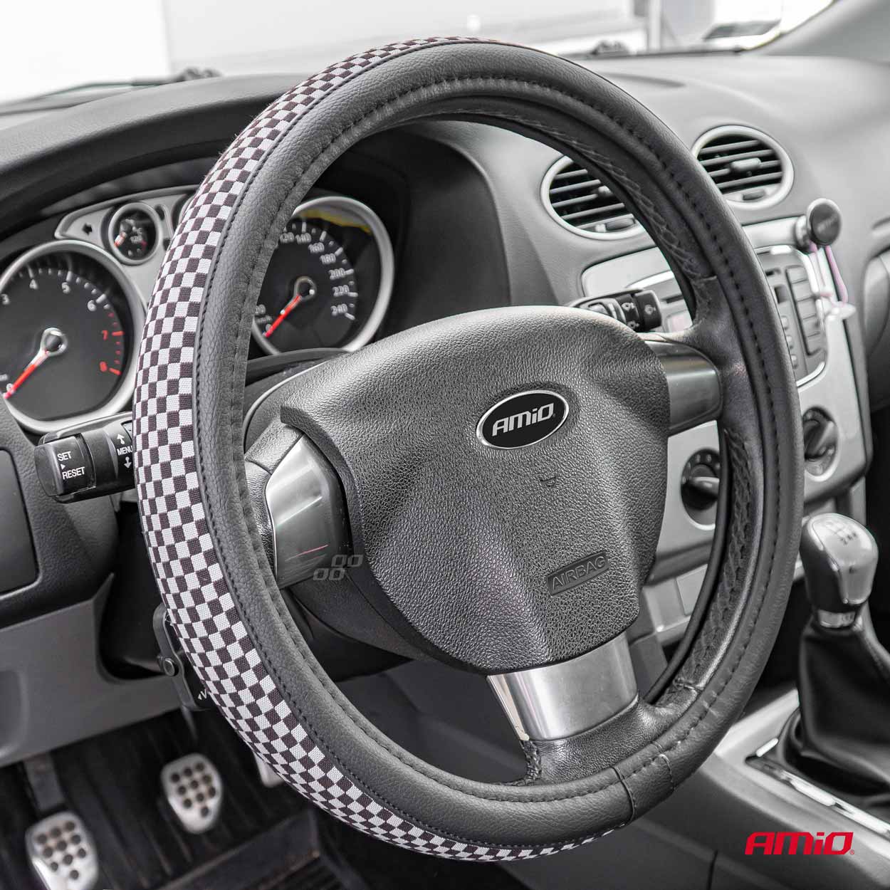 ΚΑΛΥΜΜΑ ΤΙΜΟΝΙΟΥ SWC-60 (M) 37>39cm ΜΑΥΡΟ ΜΕ ΣΧΕΔΙΟ ΑΣΠΡΟΜΑΥΡΗ ΣΚΑΚΙΕΡΑ AMIO - 1 ΤΕΜ. • Κατασκευασμένο από υλικά υψηλής ποιότητας που δεν εκπέμπουν οσμές. • Προστατεύει τέλεια το τιμόνι από την τριβή ή καλύπτει προηγούμενες ζημιές. • Η εσωτερική πλευρά του καλύμματος είναι αντιολισθητική και εμποδίζει την ολίσθηση του καλύμματος. Μέγεθος: 37-39 cm. Συσκευασία 1 τεμαχίου